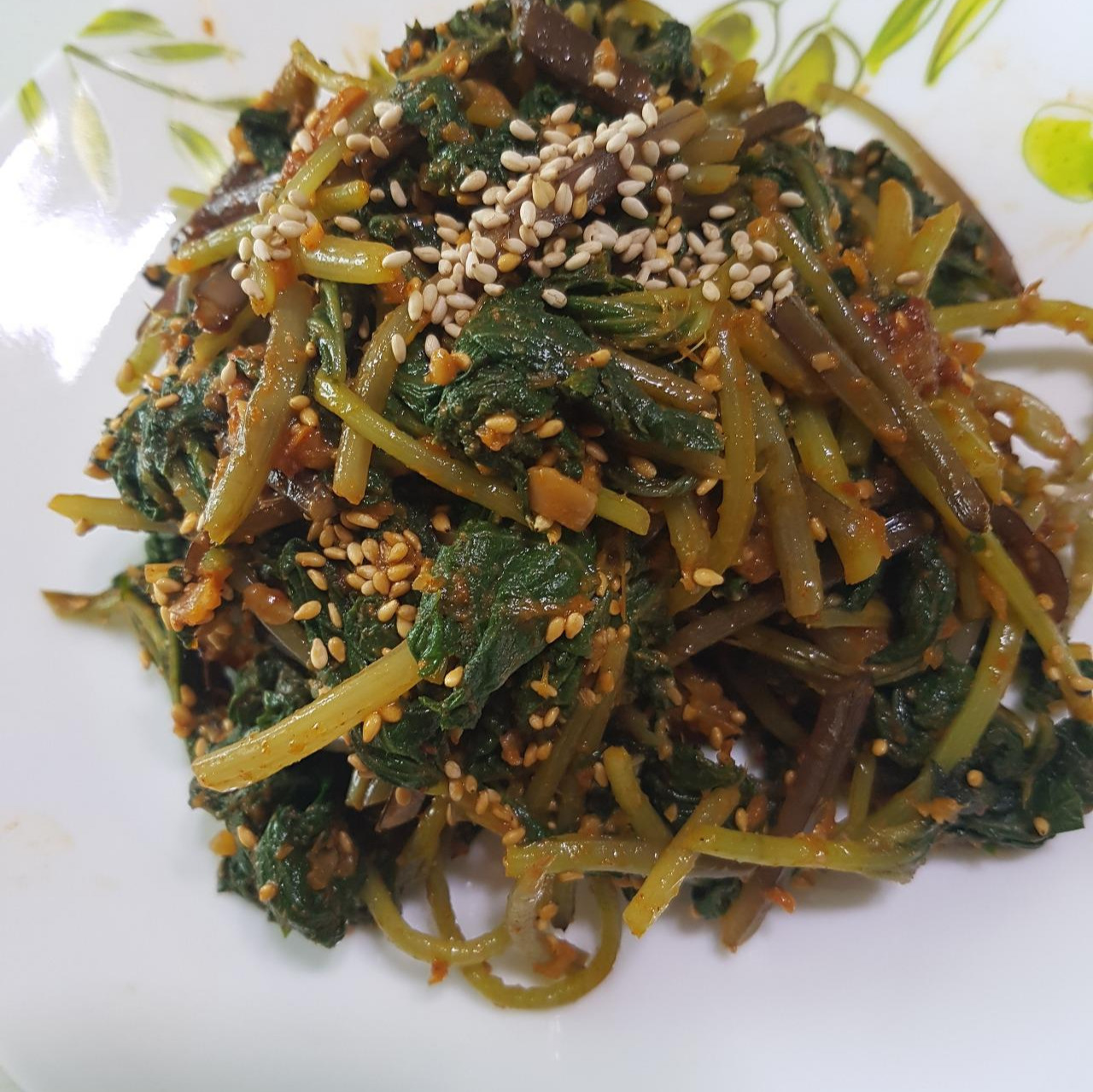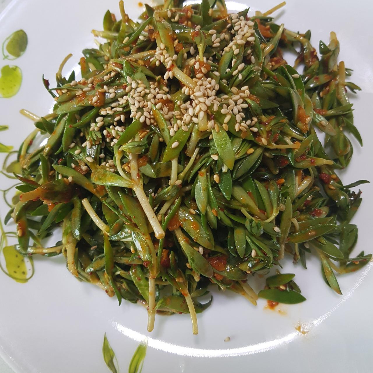 고추장 된장으로 들기름 넣어 무친 돌나물과 머위 나물