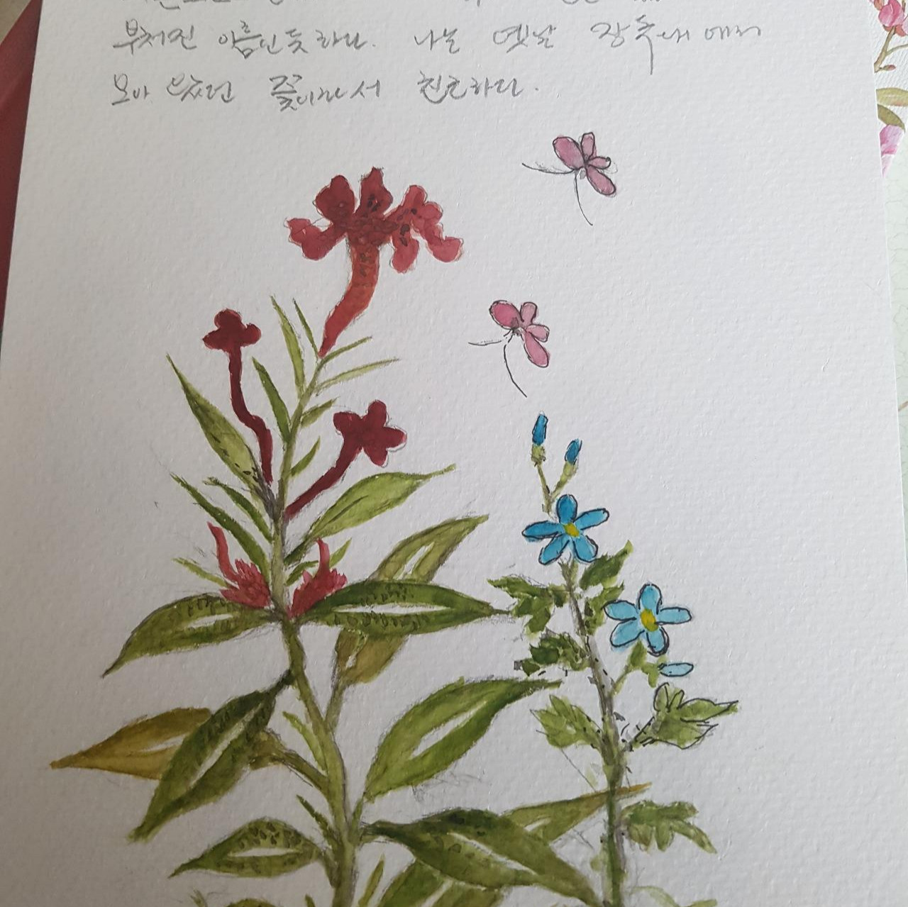 사람이 사는 일은 마음을 어디에 두고 사느냐가 퍽 중요하다는 생 각이 든다. 나는 마음을 가지런히 하고 오늘도 꽃그림을 그리며 논다.