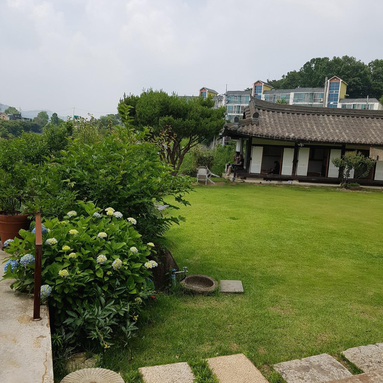 나는 찻집에 들어서면서부터 사진 찍기에 마음이 분주하다. 마당의 잔디도 마음을 편안하게 하지만 한옥의 마루 끝에 앉아 자연의 아름다움을 감상하는 것도 특별한 시간을 만끽할 수 있다. 한옥 아래채에는 내부 공간이 예쁜 독립서점 티움이란 책방이 있어 요즘 인기 있는 작가들의 책들이 손님을 기다린다.