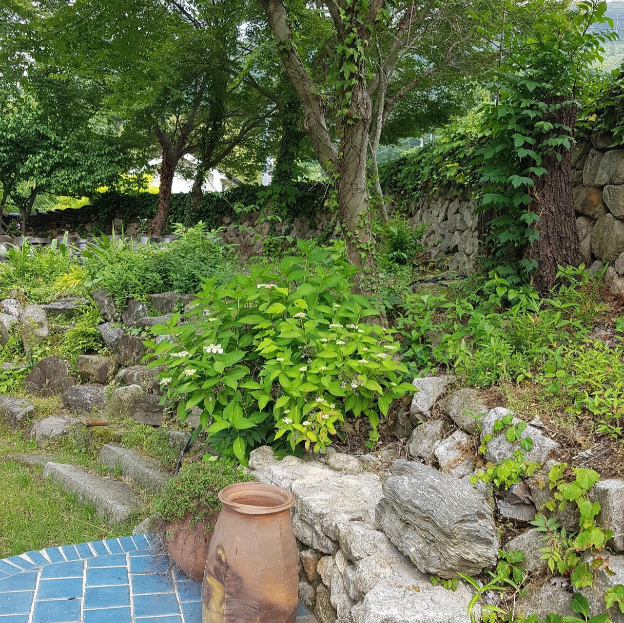시간이 되는 분들을 책을 한 권 골라 툇마루에 걸터앉아 흘러가는 하늘의 하얀 구름도 보고 앞산 전경도 보면서 여유 있는 시간을 보내는 것도 휠링 하는 시간이 되기에 충분하다. 찻집 언덕에는 차나무들이 있어 얼마나 반가운지 찻잎 몇 장을 따다가 나는 차를 마시며 다식 접시에 놓으며 찻잎을 가지고 놀았다.
