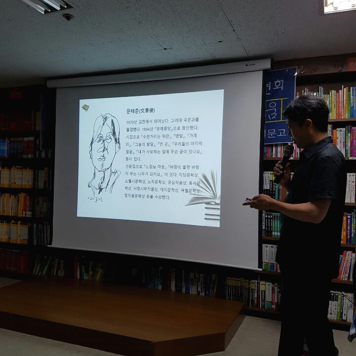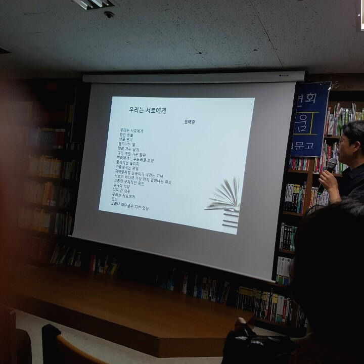 서점에서 문태준 시인이 강연하는 날, 시인이 강연하는 날은 시 낭독을 하는 날이다. 나는 그런 날은 마음이 말랑말랑 해지며 마치 구름을 걷고 있는 듯한 느낌이다. 시 낭송을 듣고 있으면 메마른 감성이 촉촉해진다. 나는 소녀 시절부터 시를 좋아했다. 항상 길을 걸을 때에도, 자연에서 만나는 꽃 한 송이를 바라볼 때도 시심에 젖어 시를 읽곤 했었다.