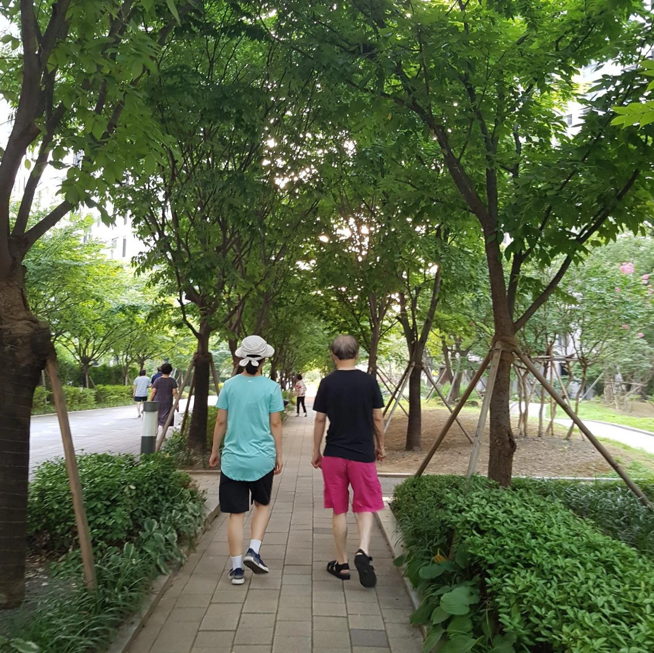 어떤 날은 사위와도 걷는다. 오랫동안 열심히 살고 오십이 넘어 이제는 안정된 생활을 하고 있으니 보기가 좋다. 사위는 남편에게 이곳저곳 설명해 주기 바쁘다. 항상 긴장하고 살았던 모습이 이제야 여유가 있어 보여 부모인 우리도 마음이 편하다. 결혼하고 부부가 맞벌이를 하면서 몇십 년을 열심히 살아온 결과인 듯하다.