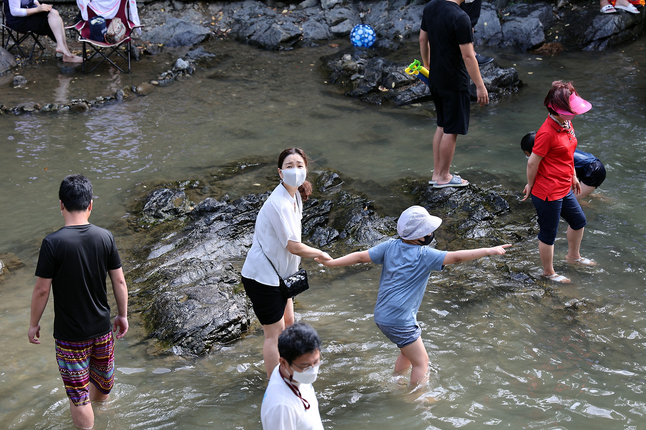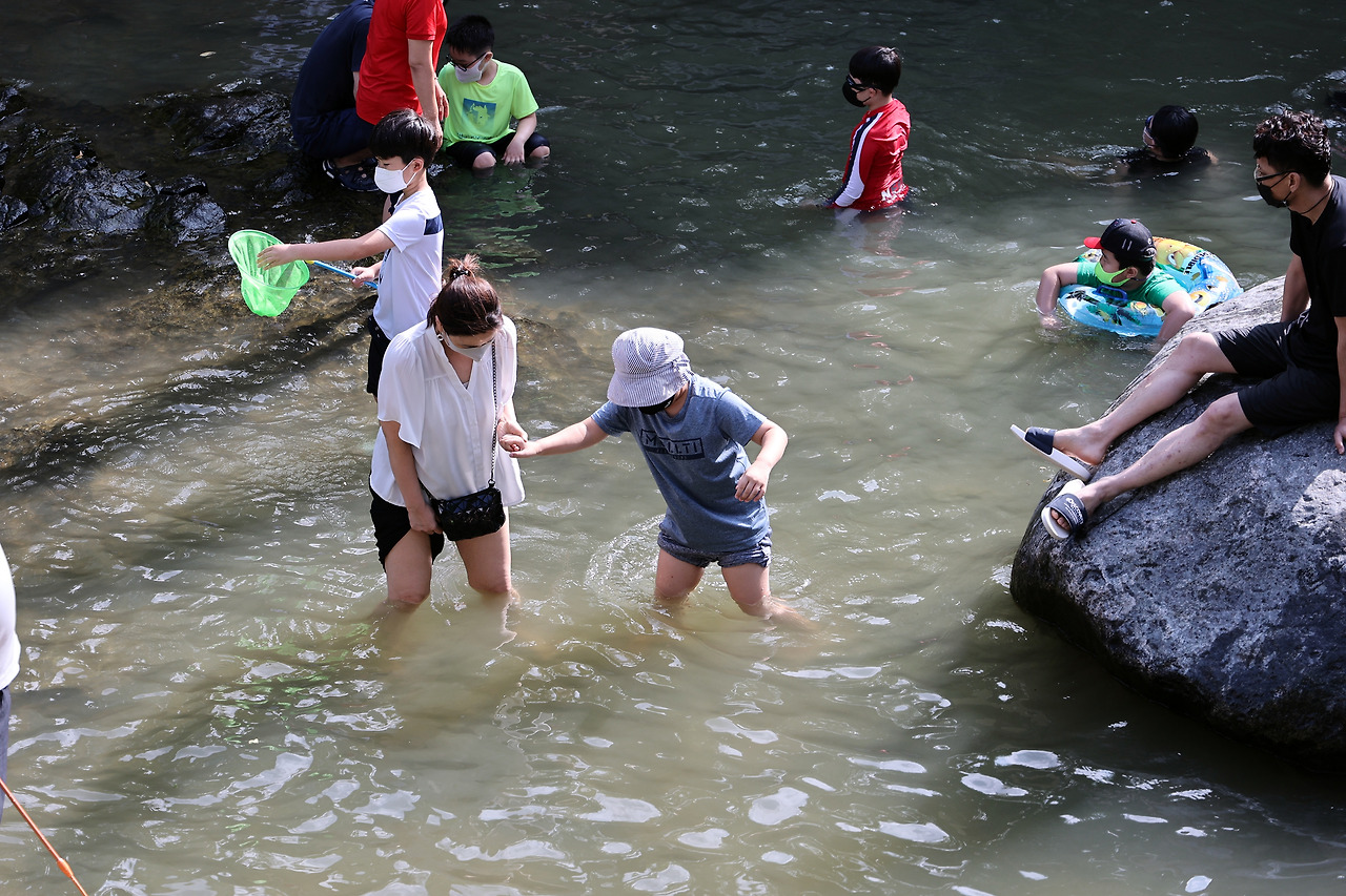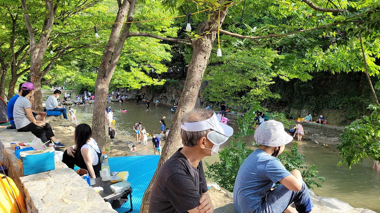 남한 산성은 왔지만 날도 덥고 어린 손자가 있어 둘레길을 걸어서 성곽을 보고 성을 보야야 남한 산성 온 느낌은 알 수 있는데 오늘은 가족을 만나고 차 마시고 마음에 휠링 만 하고서 곧바로 차를 돌렸다. 손자가 계곡을 가지고 조르는 바람에 잠깐 들려보려고 차를 타고 내려왔다.