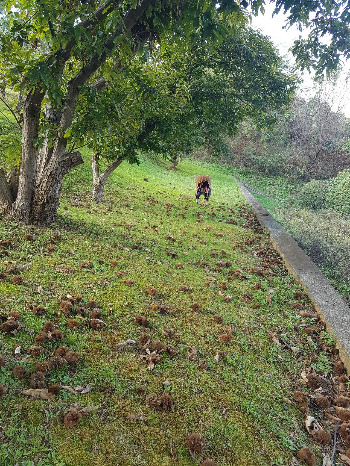 텃밭만 나가면 야채들이 잔뜩이다. 가을 야채를 가지고 금방 요리를 하면 싱그럽고 맛있다. 우리는 산아래 밤나무 밑으로 밤을 주으러 올라간다. 가을밤은 먹는 것보다 떨어진 밤을 주을 때 더 재미있다. 가시 있는 밤송이 속에는 알밤이 들어있어 막대기로 밤을 꺼내여 줍는다. 토실토실한 밤알은 사서 먹는 밤과는 또 다른 맛이다.