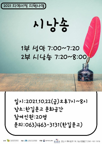 이틀 전 한길 문고에서 노래와 시 낭송회가 있었다. 멀리 가지 않아도 동네 서점인 한길문고 문화 공간에서 열리는 노래와 시 낭송은 가을밤 낭만을 불러온다. 마치 메마른 나무에 물을 주듯 우리 마음을 촉촉이 적셔 준다. 우리 삶에서 음악과 시가 없으면 얼마나 삭막할까 싶다.