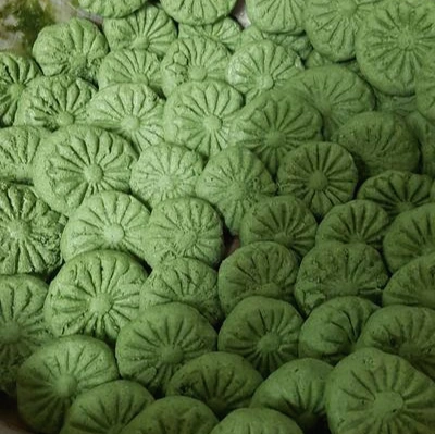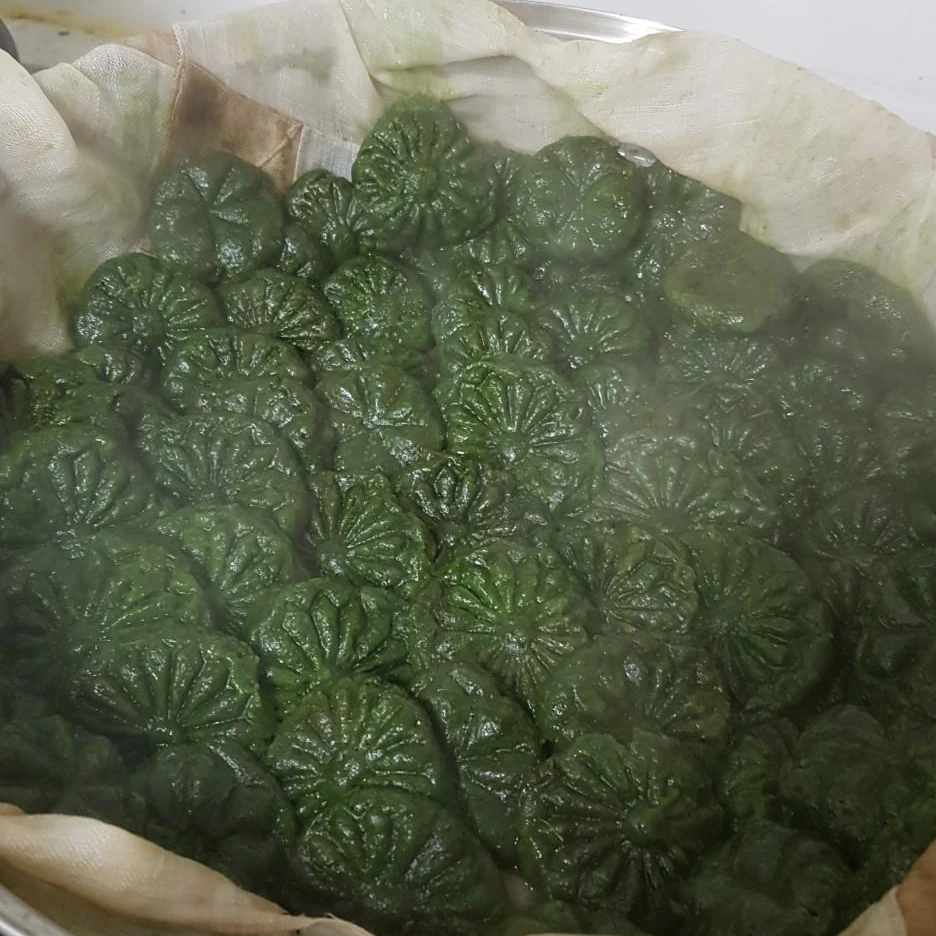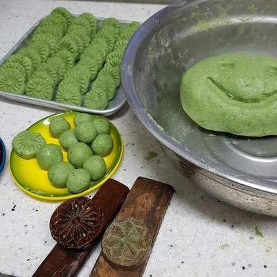 떡 만들기는 쑥을 넣어 빻아온 쌀가루 반죽을 한 후 새알만 하게 동글동글 만들어 전통 떡살로 찍어낸다. 예전에 서울 장안평전통 시장에서 사 온 떡살은 가끔씩 유용하게 잘 쓰고 있다.
