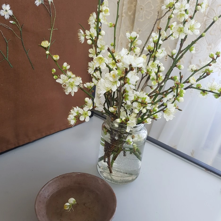 잠깐씩 시간을내서 만들어 놓은 떡과 매화꽃 한 송이 띄워 차 한잔 마시는 운치도 즐긴다, 코로나 19는 우리에게 아픔이지만 그 속에서 이겨내는 슬기를 찾는다. 아무리 어려운 일도 담담히 참아내고 그리고 극복할 것이다. 시간이 모든 걸 해결하리라 믿는다. 우리 모두 파이팅 하기를...
