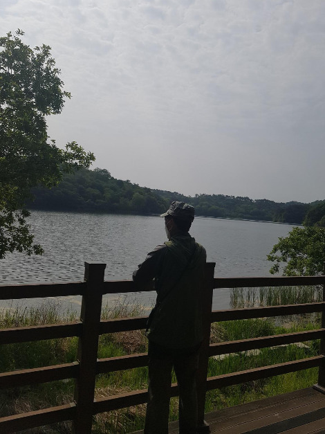 군산 호수는 1939년에 호수를 만들어 상수원으로 사용했던 상수원 보호구역이었다. 그 이전에는 마을과 밭이 있어 주민들이 살았던 곳이라 한다. 호수 건너 남편의 집 시댁이 그곳에서 살았고 남편은 뒷동산에 소를 메어 놓고 새우 잡이를 하면서 놀았다고 옛이야기를 들려주곤 한다. 그 추억을 못 잊어 이곳에만 오면 항상 데크 앞에 서서 호수 건너를 하염없이 바라본다.