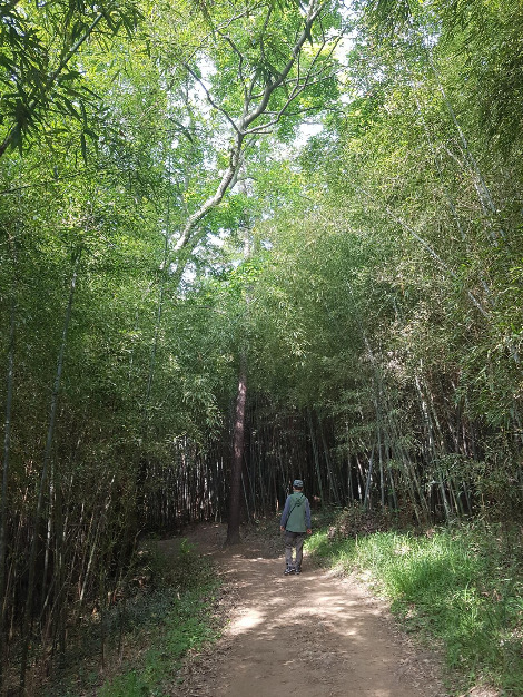 산길에 들어서면 커다란 산 수국도 피어있고 신록과 함께 걷는 길이 상쾌하고 기분이 좋다. 조금 걸어가면 어디에서도 볼 수 없는 우거진 대나무 숲이 장관이다. 담양의 죽녹원을 가지 않아도 대나무 숲이 환상적이다. 나는 이곳에 올 적마다 대 나무 숲을 걷는 것이 즐겁다. 바람이 부는 날은 댓잎 부딪치는 소리가 사각사각 숲의 요정이 노래를 부르는 것만 같다.