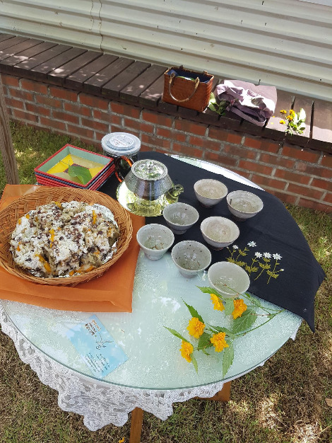 어제가 바로 그날이다. 햇살도 좋고 바람도 살랑살랑 불고 날씨가 좋다. 녹음이 우거진 나무 그늘 아래 놀기 좋은 날씨다. 나는 아침부터 서둘러 찻자리 준비와 어제 쪄 놓은 아카시아 꽃 떡을 바구니에 담아 보자기에 싸들고 말랭이 마을로 향했다. 오늘은 어떤 인연을 만날까? 사람은 살면서 수많은 시절 인연을 만난다.