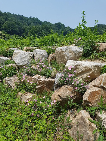 산소가 있는 산에 도착하면 차를 아래 넓은 공간에 주차하고 걸어가면서 마주하는 풍경이 좋아 일부러 나는 걸어서 산소까지 올라간다. 해마다 만났던 꽃들을 바라보며 걷는 길은 마음이 포근해진다. 지난해 예쁘게 피었던 분홍 달맞이꽃이 올해는 꽃이 많지 않아 왜 그럴까 궁금하다. 더 올라가면 또 다른 꽃이 나를 반겨준다. 꽃그림 그리는 걸 좋아하는 나는 꽃만 보면 사진을 찍고 꽃을 유심히 관찰한다.