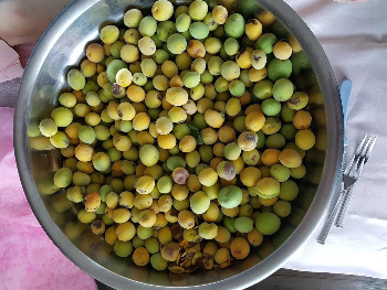 산소에서 따고 주운 매실 부모님 산소에 가면 매실나무가 두 그루 있다. 그 나무에서 따기도 하고 나무를 흔들어 주워온다.