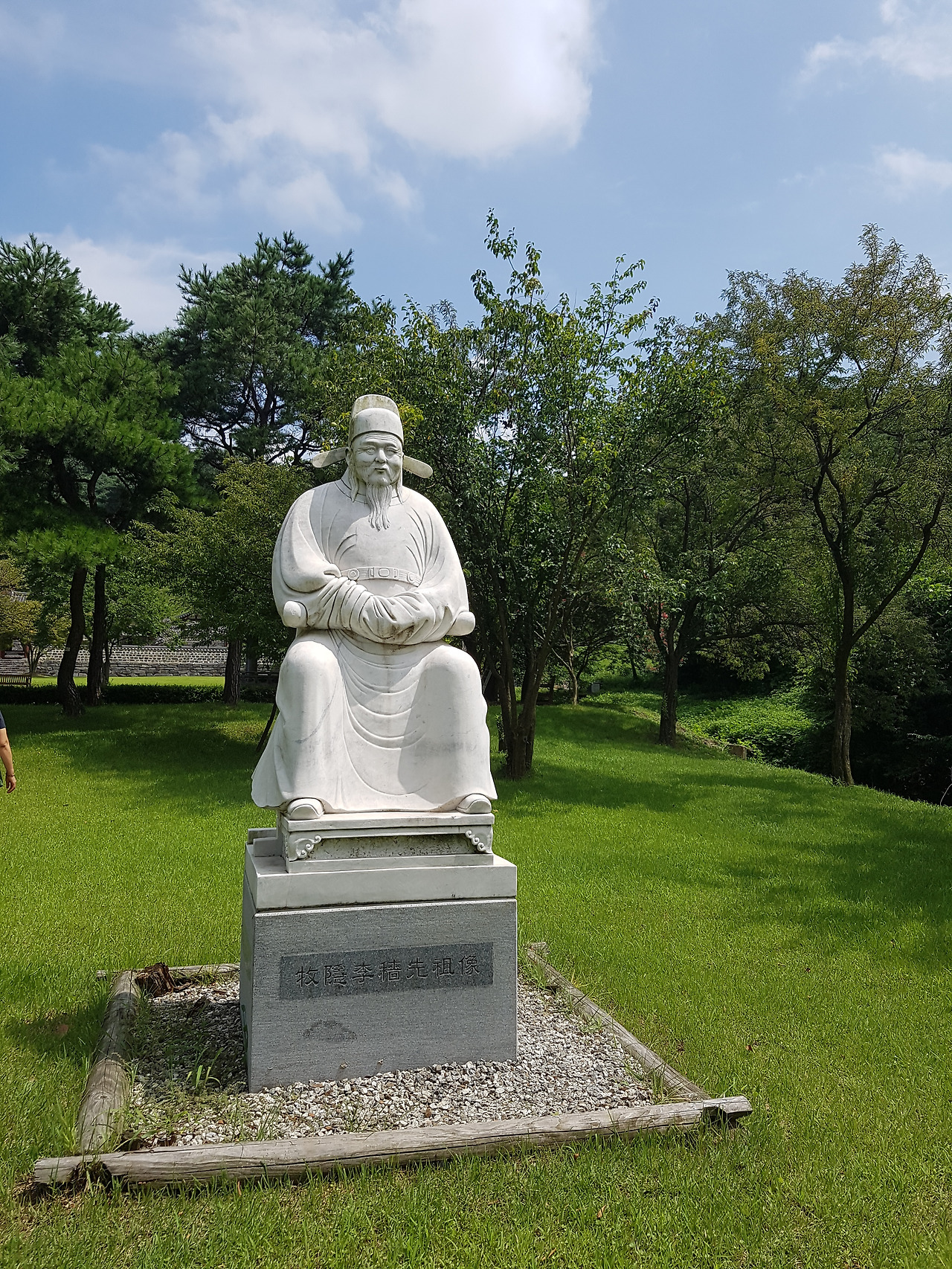 서원 앞 잔디 정원 이색 목은 선생의 동상