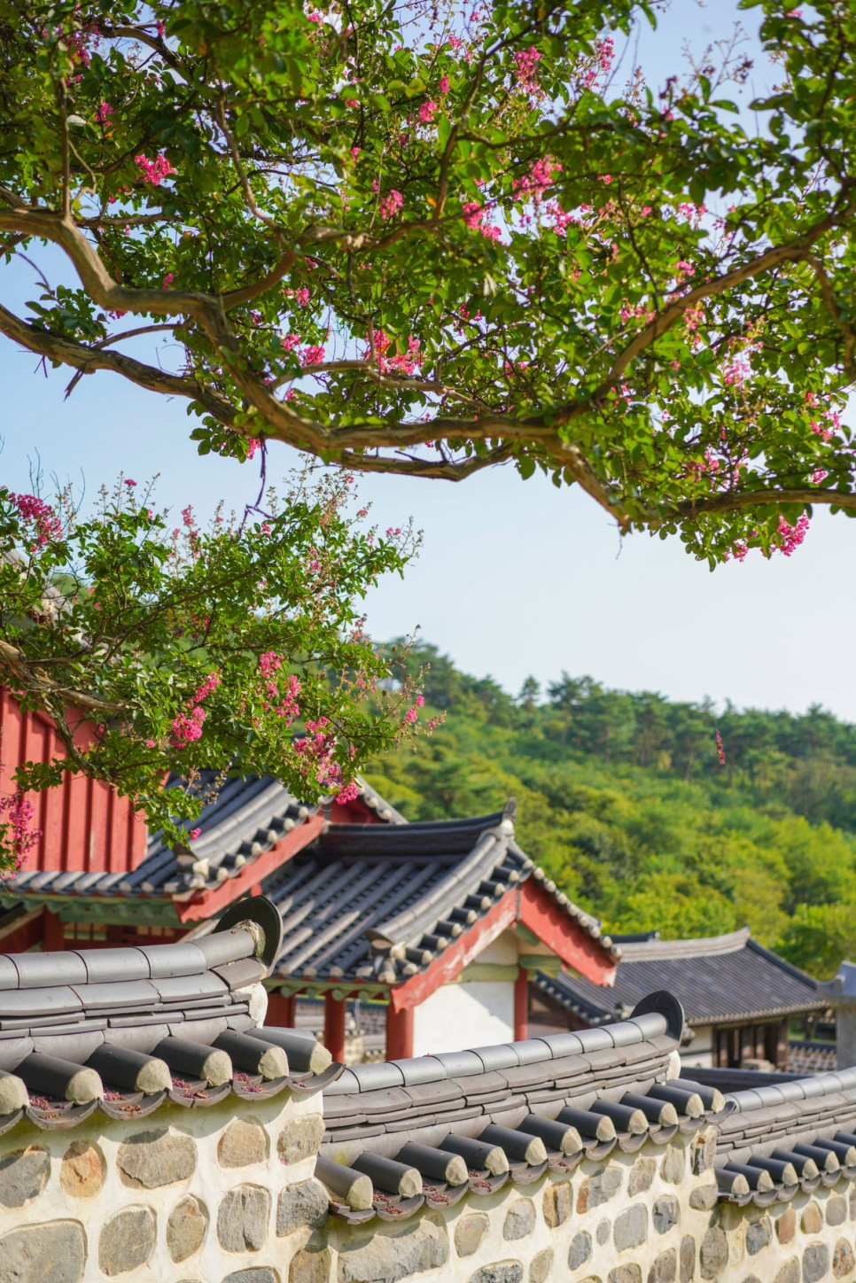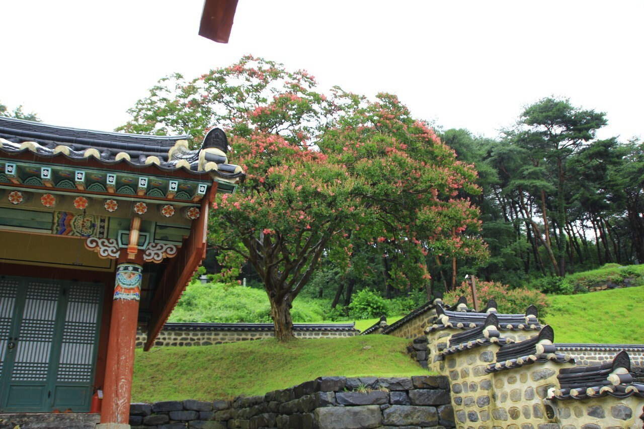 어느 곳 한 곳이 소홀하지 않고 정성이 깃들인 여러 곳의 공간은 오랜 기품이 느껴진다. 사람의 그림자 하나도 보이지 않는 고적함이 나를 1000년의 세월을 뒤로 돌아가게 한다. 가을이 오면 언제라도 좋은 사람과 다시 저곳 마루에 앉아 차 한잔을 하고 싶다. 조금 늦은 걸음으로 만발한 배롱나무의 꽃을 만끽할 수 없었지만 아직도 남아 있는 꽃이 운치를 더해 준다. 잔디와 한적하고 고요함이 나를 매료시킨다.