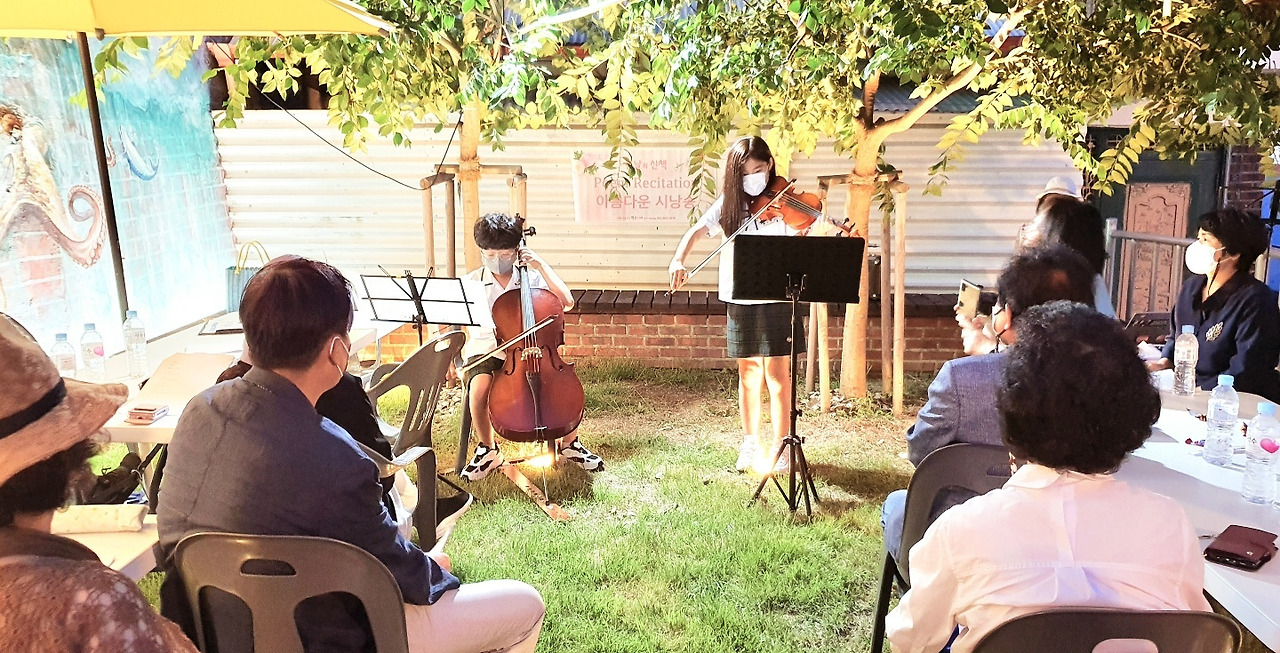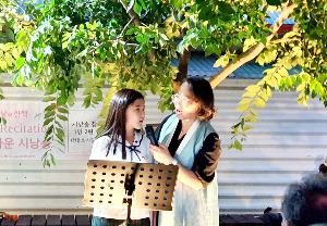 월명동과 접하고 있는 말랭이 마을 봄날의 산책에서는 이번에도 야행 행사의 일환으로 시 낭송 대회가 열렸다. 이번이 2번째인 시 낭송 대회는 처음과는 차별화된 행사였다. 어린이들이 대거 참석을 하여 시를 낭송도 하고 낭독하며 바이올린과 첼로도 켜는 멋진 공연을 보여 주었다. 아직 어린 나이라서 시어도 잘 모르지만 낭랑한 목소리로 시를 읽고 수줍어하는 모습이 얼마나 귀여운지, 보기가 참 좋다. 계속 이렇게 따뜻하고 책을 좋아하는 아이들로 자라기를 희망해 본다.