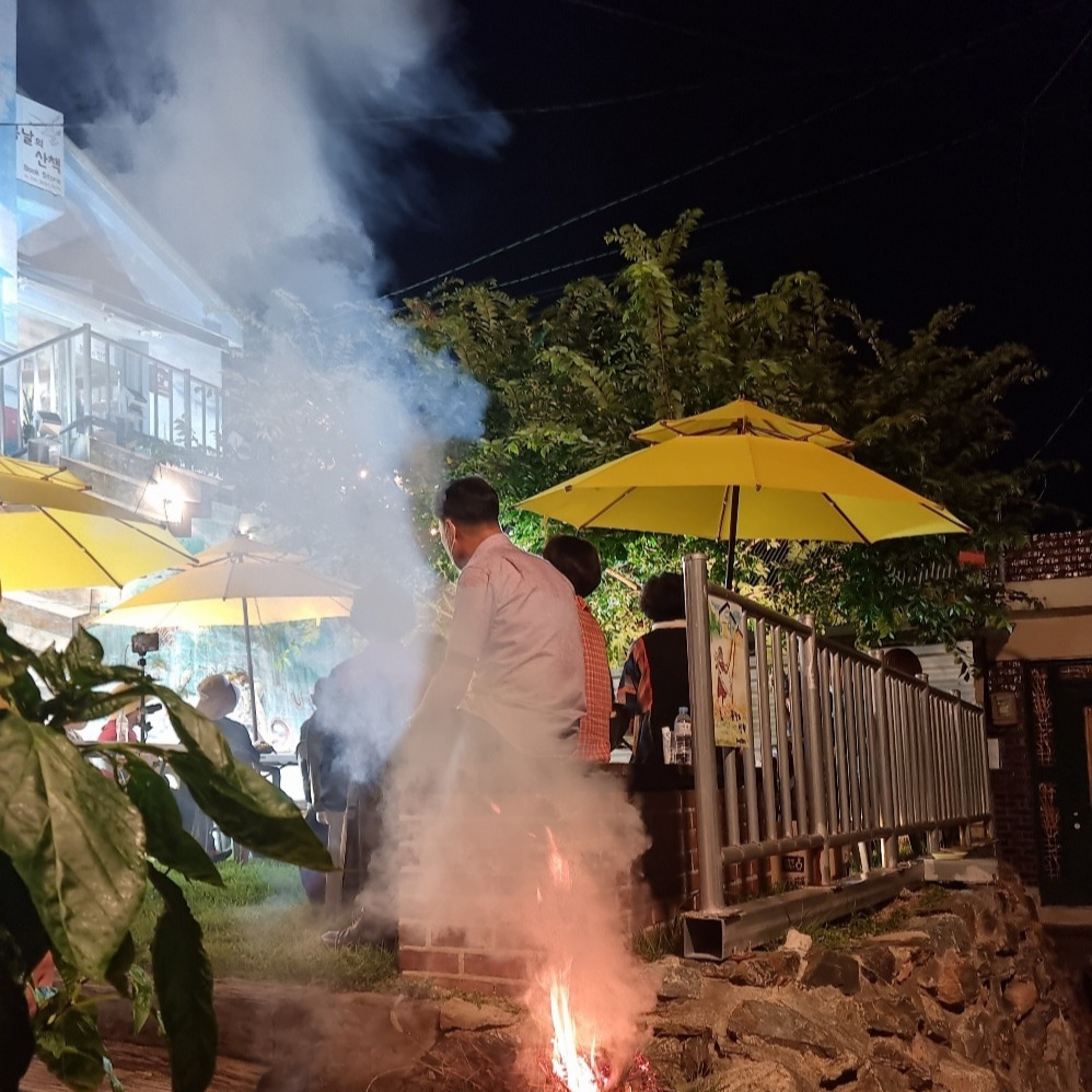 막바지 여름밤의 모기가 오늘처럼 아름다운 시 낭송 시어들을 시샘을 하나보다. 아름다운 시어들에 사람들은 감동하고 마음은 고요해지는데 잔디와 어둠이 내려앉은 의자 밑 모기들이 극성을 부린다. 모기약을 피워 놓았지만 사나운 모기는 약으로는 해결이 안 된다. 책방지기 남편은 여기저기 모기 불을 피워 모기를 쫓고 있다. 연기는 하늘 높이 솟아오르고 마치 옛날 시골집 마당에 모깃불을 피운 후 멍석을 깔아 놓고 가족들이 도란도란 이야기하는 모습처럼 정겨웠다.