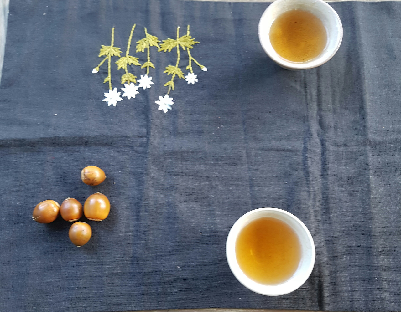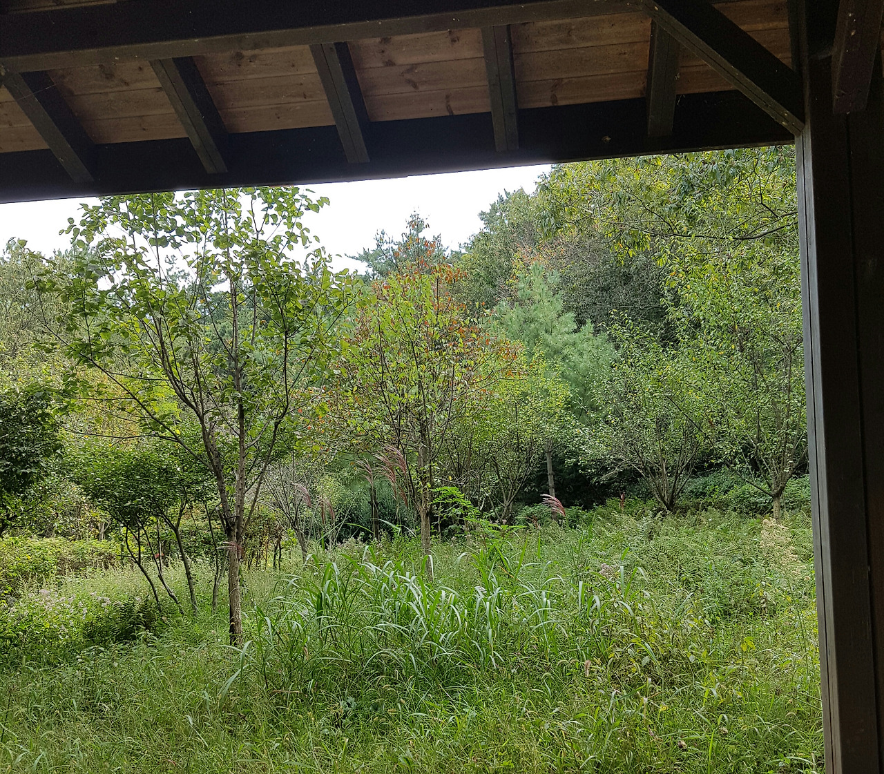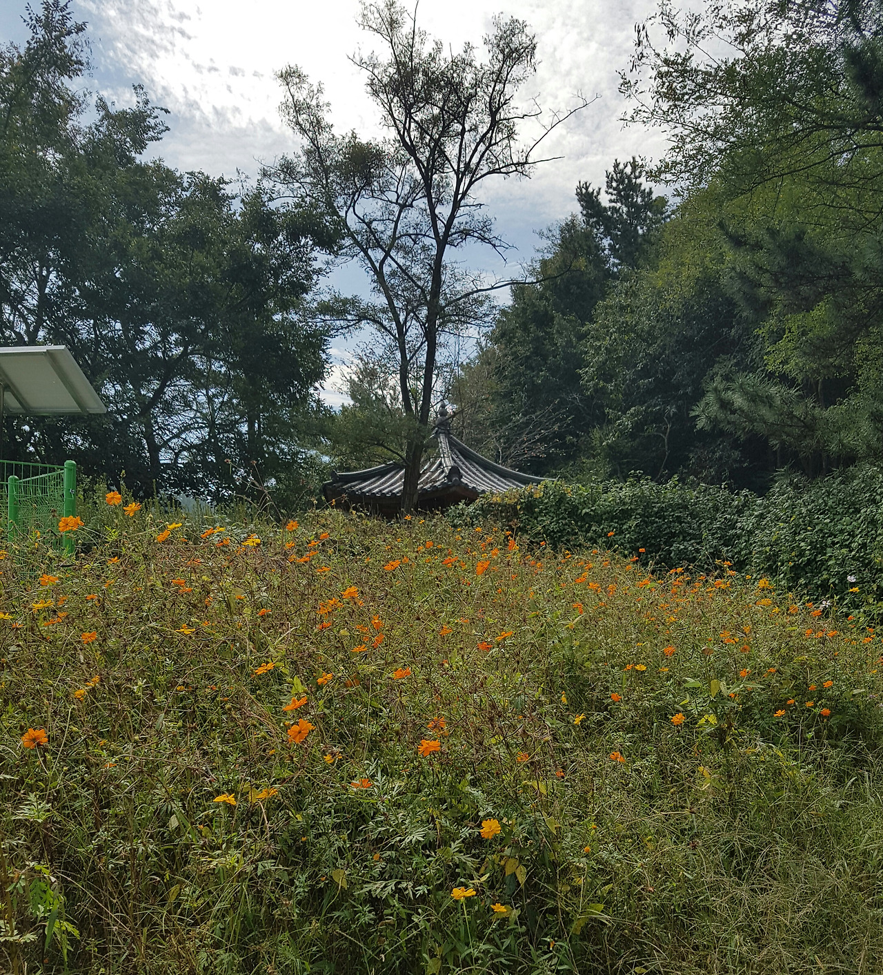 두 사람은 보는 것만도 애달프다. 수 없이 많은 세월을 함께한 추억이 깊다. 남자들은 더 많이 걷고 허리 수술을 한 남편친구 짝은 나와 함께 정자에 앉아 차 한잔을 하면서 쉬고 있다. 바람은 선들 불고 어디에서 숨어 우는지 풀벌레 소리는 가을이라고 알려 주는 것 같다. 말이 없어도 자연 속에 있으면 내가 바로 자연이 된다. 곁에 보이는 야생화마저 친근하다. 옆 도토리나무에서 도토리가 떨어진다. 도토리 몇 알 주어놓고 차를 마신다.