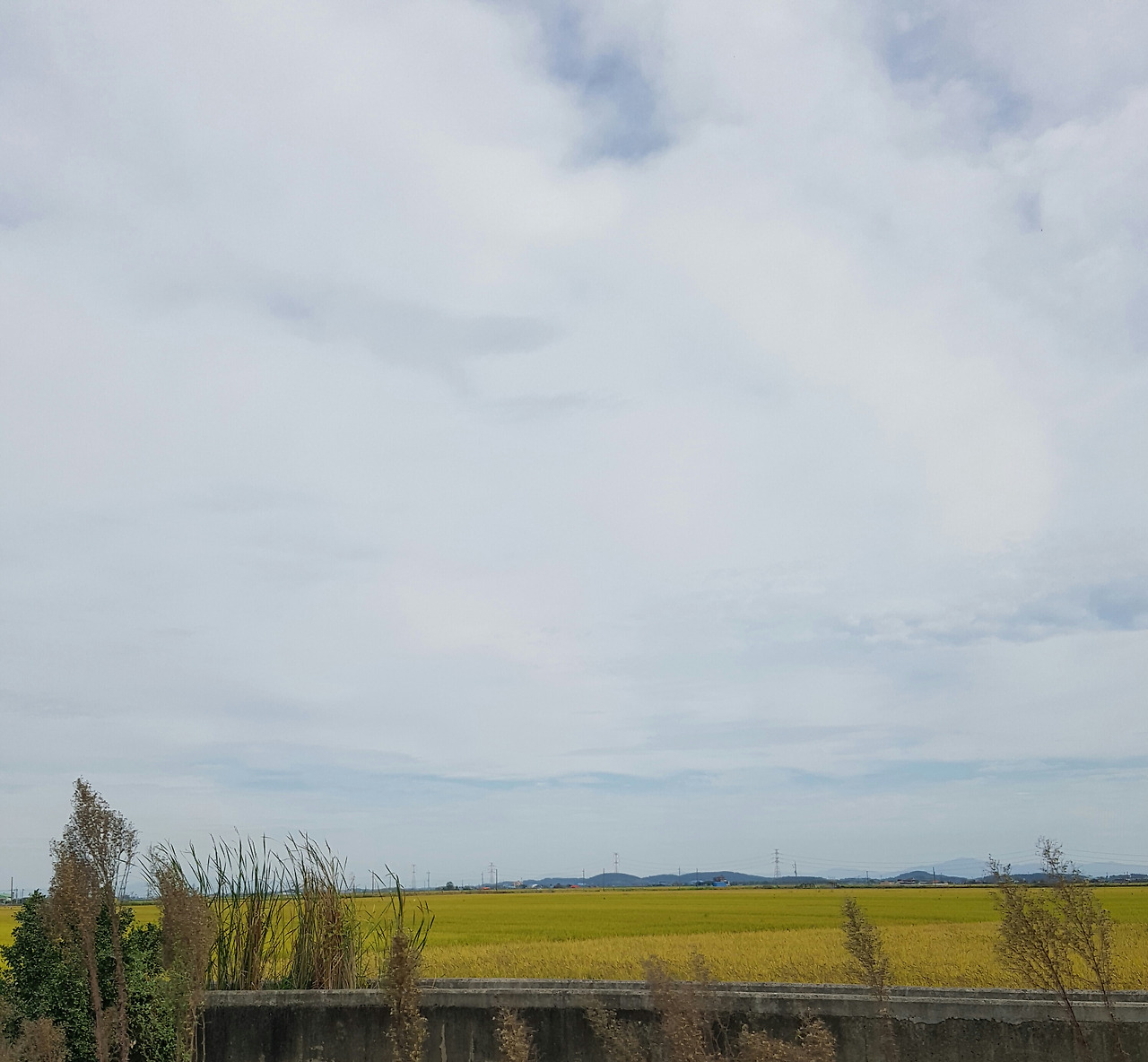 우리는 차을 한잔씩 마시고 곧바로 나오고 말았다. 사람이 많은 곳에 가면 정신 적으로 피곤하다. 차를 타고 밖으로 나와 남편이 살았던 들길을 한 바퀴 돌아본다. 곧 있으면 추수를 해야 할 듯 벼들은 노랗게 익었다. 말 그대로 들판은 황금 들녘이다. 이 많은 논농사는 누가 지었을까? 끝없이 넓은 들판을 보며 놀랍다. 올여름 비는 많이 왔지만 벼농사는 풍년이다. 벼가 익은 들판은 바라만 보아도 마음이 풍요롭다.