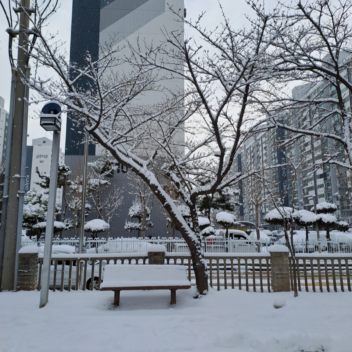 폭설은 내리고 밖에는 사람 그림자도 보이지 않는다. 눈이 워낙 많이 왔기에 사람들의 삶도 멈춘 듯하다. 사방이 고요한 설원이다. 모든 사물이 눈 속에 묻혀 차가 다니는 길과 사람이 다니는 길을 구분할 수가 없다. 하얀 설원이 눈이 시리도록 아름답고 마치 동화 속 세상 같다. 내 생애 이런 날이 몇 번이나 올까 싶다. 오늘 있었던 일은 내 기억 속 서랍에 저장해 놓으련다.