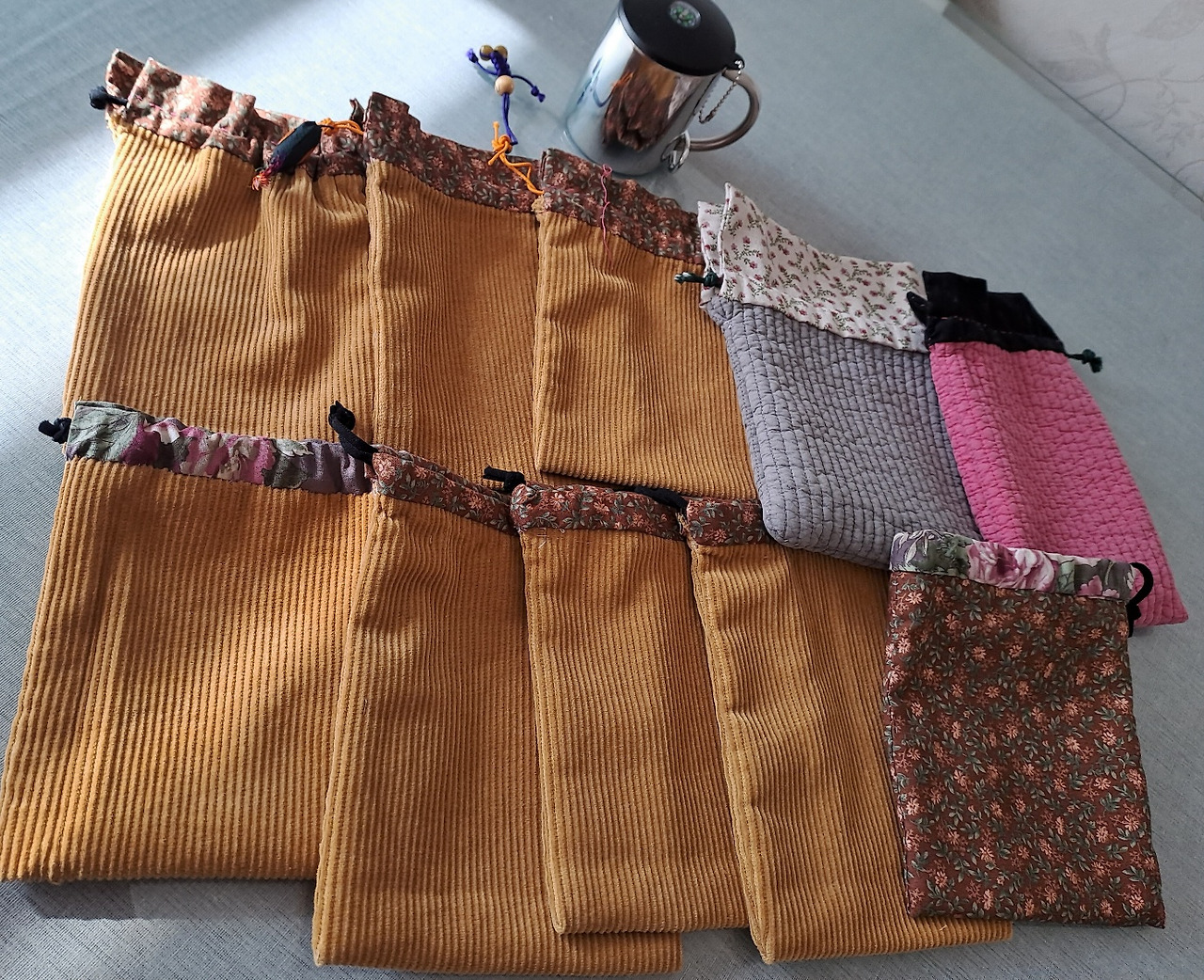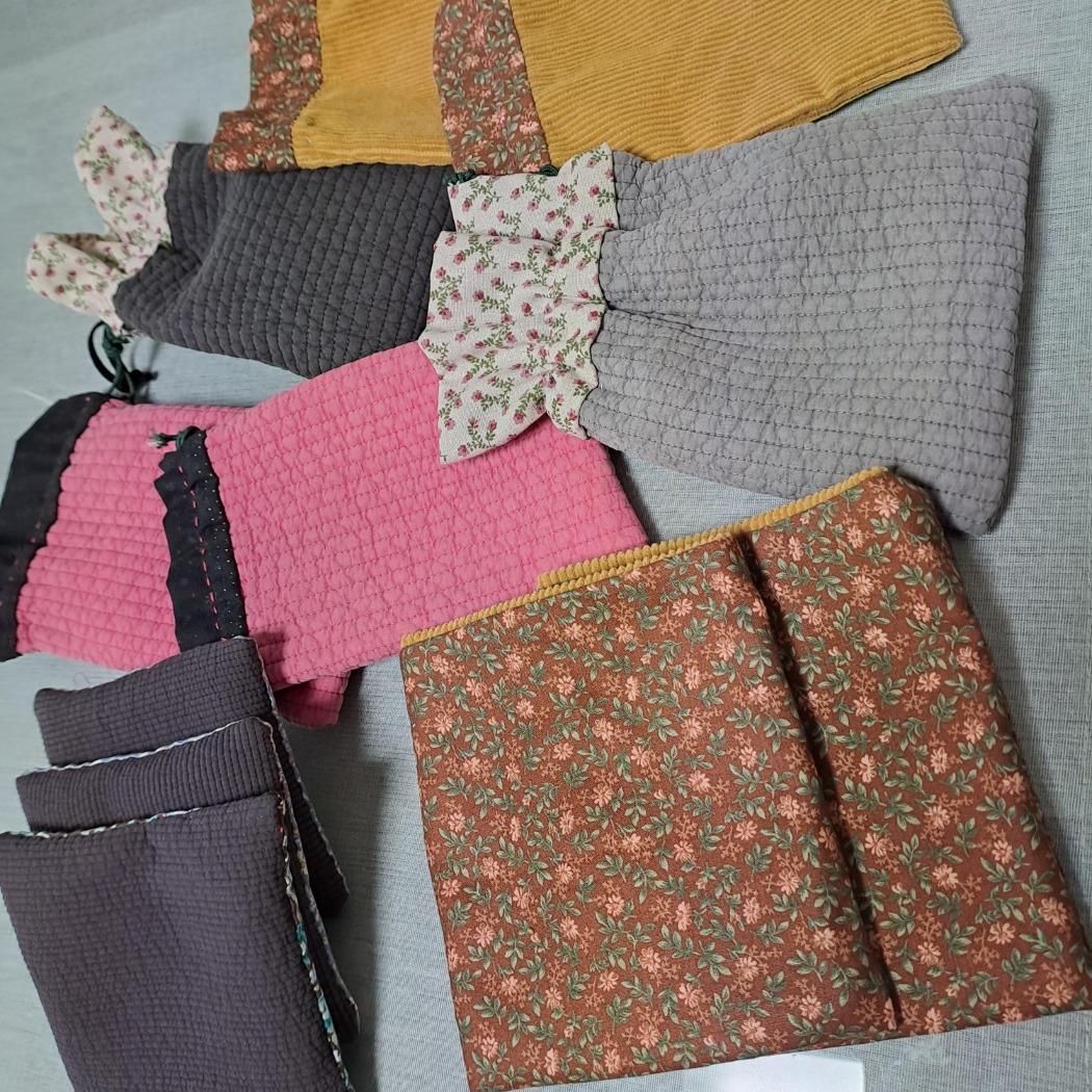다도 할 때 쓰던 천들이 서럽 안에 남아 있었다. 서랍에서 잠자고 있던 천을 사용할 용도가 있어 다행이다. 필요한 곳에 내가 시간을 더 해 주면 되지, 하는 생각으로 시작했는데 만든 숫자가 10개가 넘어가니 이 일도 힘이 든다. 세상에 쉬운 일은 하나도 없는 것 같다. 그렇다고 시작한 일을 쉴 수 없어 계속하다가 오늘에야 끝났다.