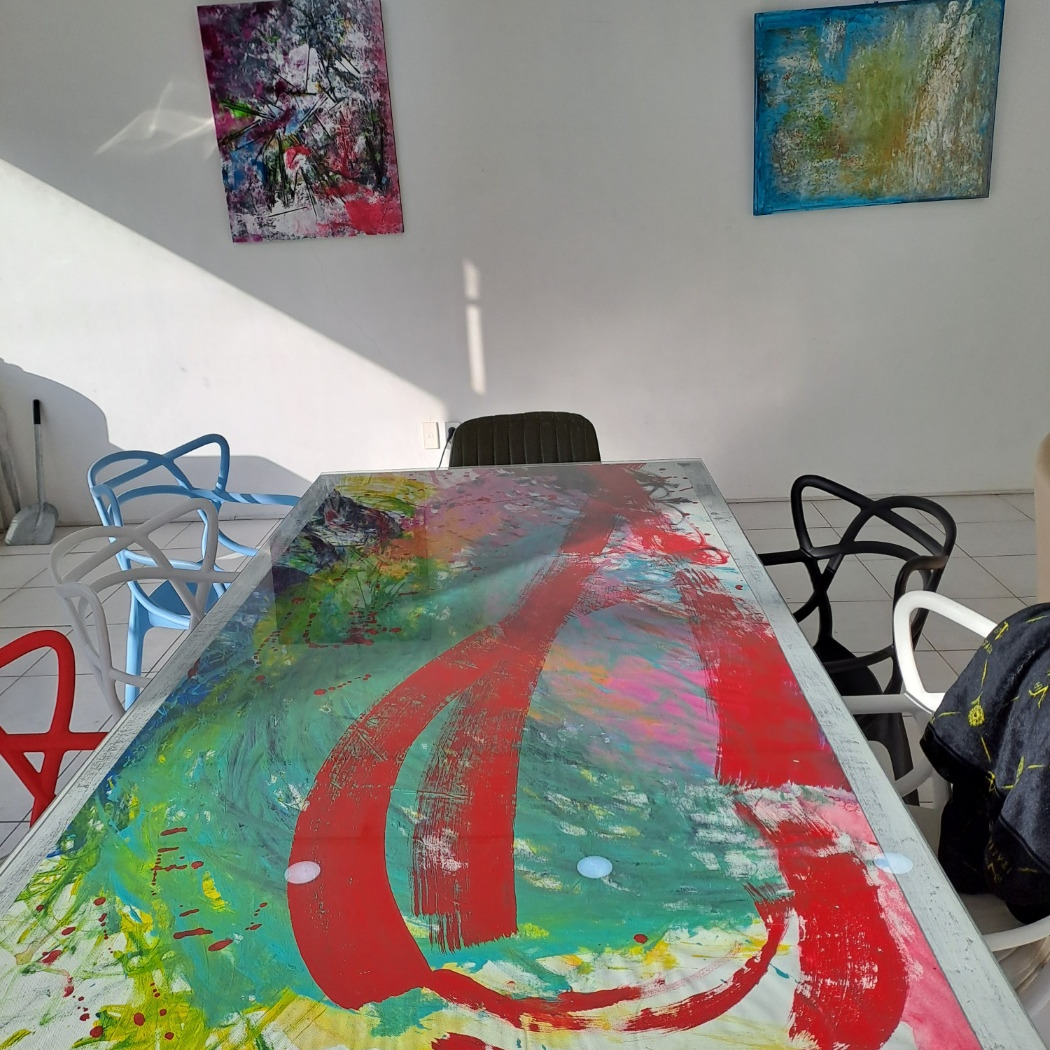 사람 사는 일은 한 치 앞도 모른 체 살아간다. 내가 매번 궁금하면서 그냥 지나치기만 했던 곳, 이제는 나도 그곳 갤러리에서 차를 마시며 쉴 수 있는 곳이 되었다. 그곳은 자페성장애 1급 32살 청년 작가가 그린 그림이 전시되어 있다. 내가 그림을 잘 보는 전문가는 아니어도 그림 색이 너무 밝고 그림 안에 숨어있는 무한한 이야기가 있는 듯 보고 앉아 있으면 마음이 참 평화롭고 보이지 않는 미지의 세계로 여행을 하는 느낌이다.