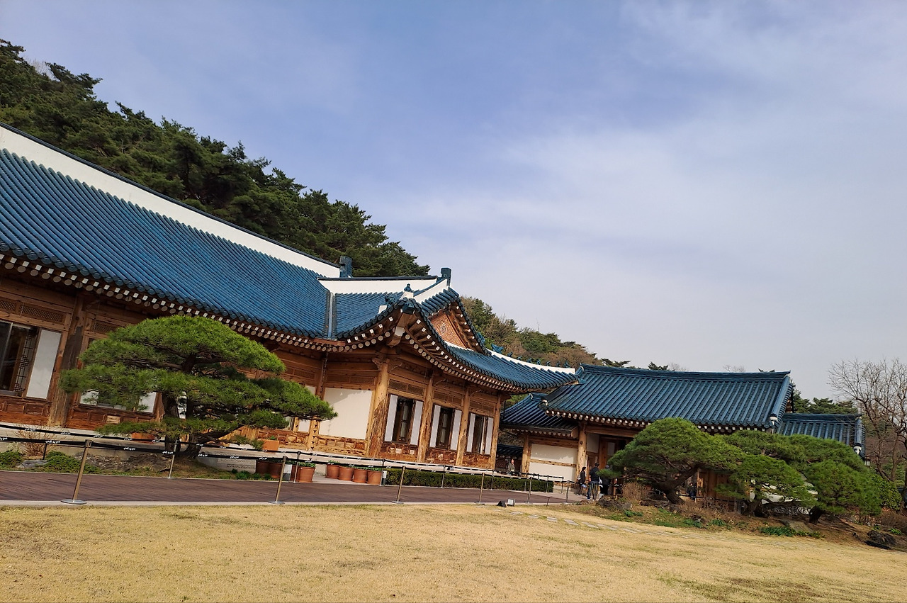 상춘재, 국내외 귀빈에게 우리나라 전통 가옥양식을 소개하거나 의전 행사 비공식 회의등을 진행하던 곳. 기와 담과 상으로 연결되는 문도 너무 아름답다. 그 옆에 다소곳이 서 있는 매화나무는 벌써 꽃이 지기 시작한다. 그 옆 관저 사진도 외관은 너무 깔끔하게 정리가 되어 있고 내부는 불 수가 없었다.