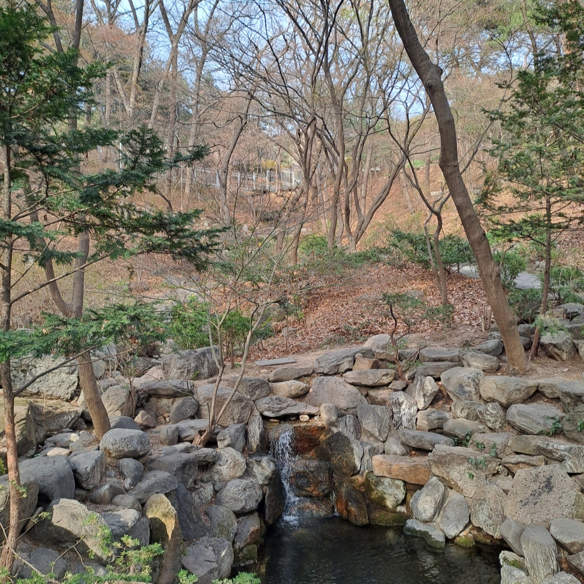 청와대 안의 오래된 특이한 나무가 멋져서 사진을 찍었다 산책로에 물이 흐르고 있다