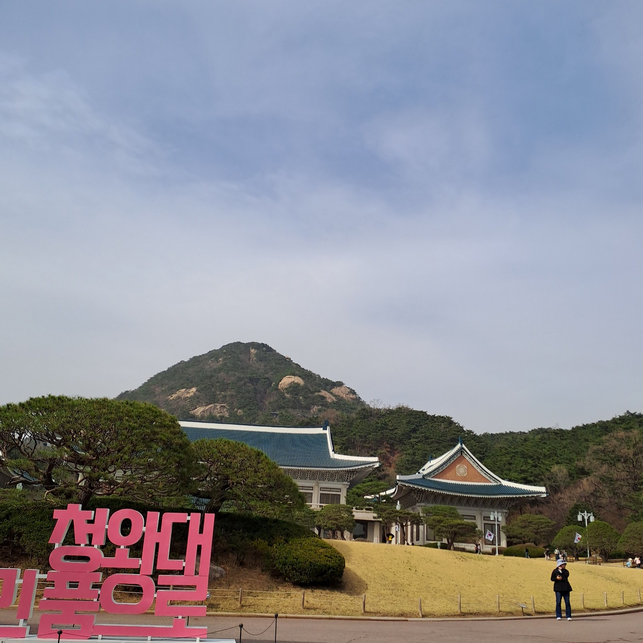 다시 정문으로 들어가면 넓은 잔디가 나오면 청와대 본관이 보이고 앞 팻말을 "청와대, 국민 품으로"라는 글이 보인다. 넓은 잔디광장과 청와대 본관의 모습이 위풍당당하게 인왕산이 병풍을 두른 듯 감싸 안고 있다. 청와대, 쉽게 들어올 수 없었던 곳. 내가 그 안에 서 있는 그 순간이 나에게는 감동이다.