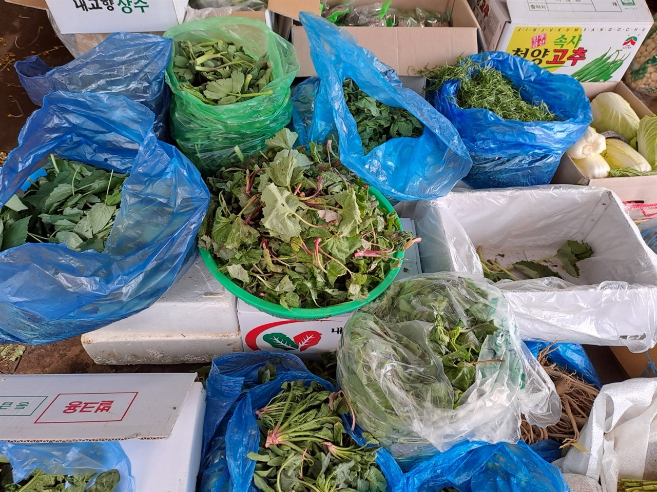 시장에 가면 각종 봄나물이 나왔다