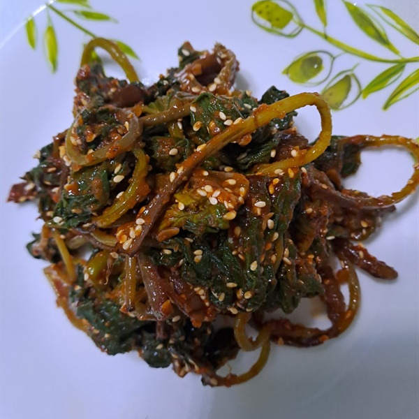 머위 나물 된장 고추장을 넣고 무친 머위 나물
