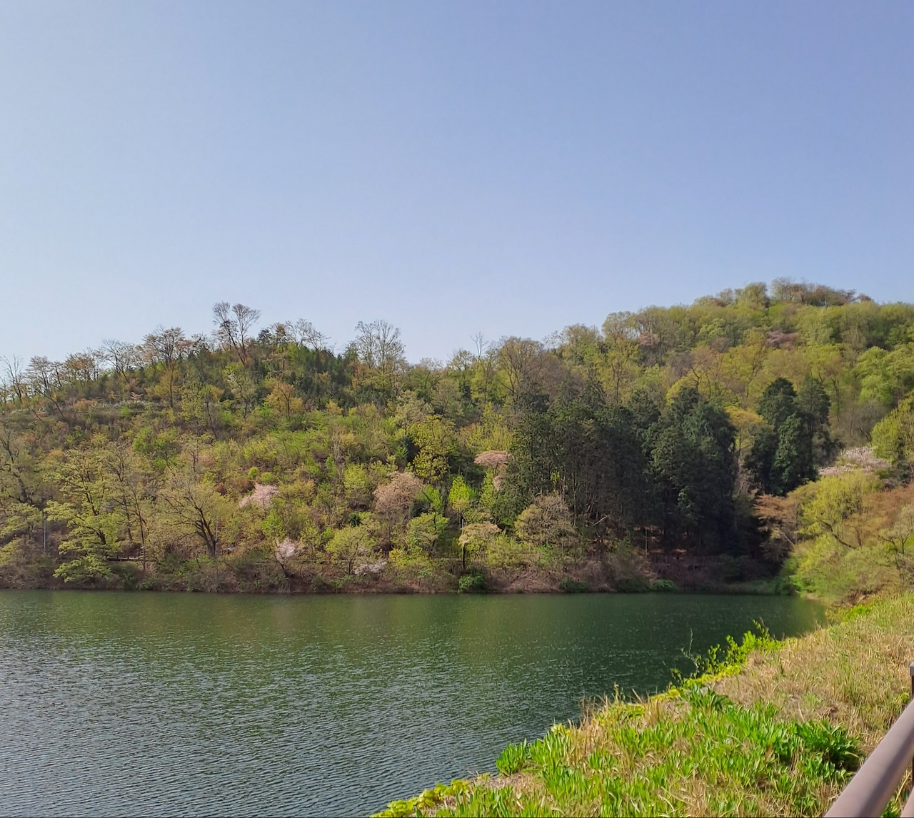 아직도 간간히 남아 있는 산 벚꽃들 초록의 나무들은 호수와 어울려 한 폭의 그림이다