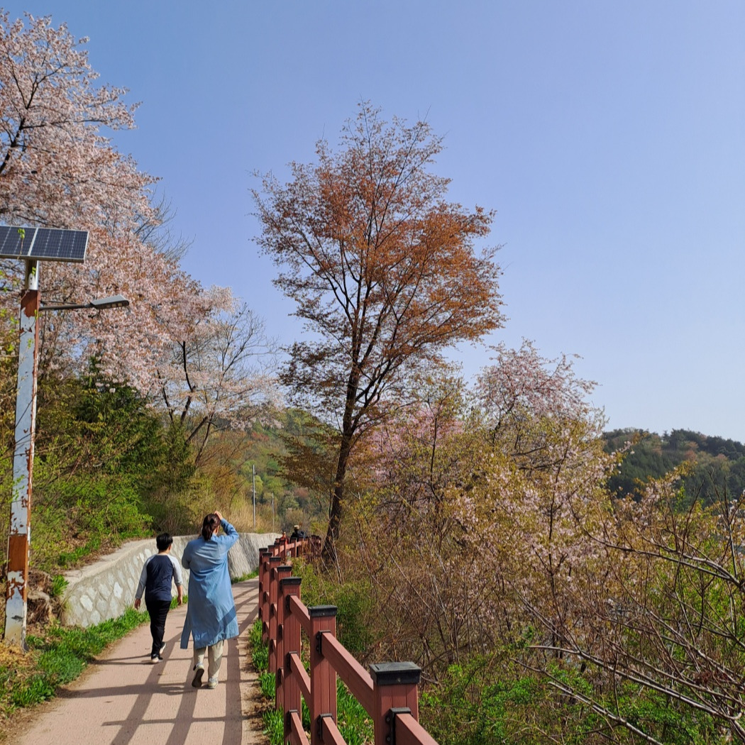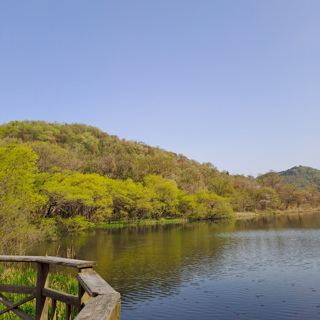 이곳은 아직 까지 간간히 산 벚꽃이 지지 않고 있어 너무 예쁘다. 내가 살고 있는 군산 월명 공원은 사계절 아름다운 풍경을 선물해 준다. 남편과 산책을 할 수 있는 공원이 있어 나는 항상 행복하고 감사하다. 내 글의 글감은 월명 공원의 사계절 번화를 보면서 사색을 하고 글을 쓴다. 내 안의 보물창고 같은 곳, 이곳은 군산 월명공원이다.