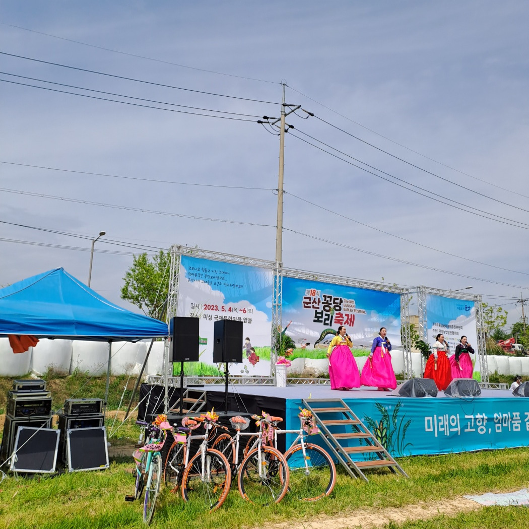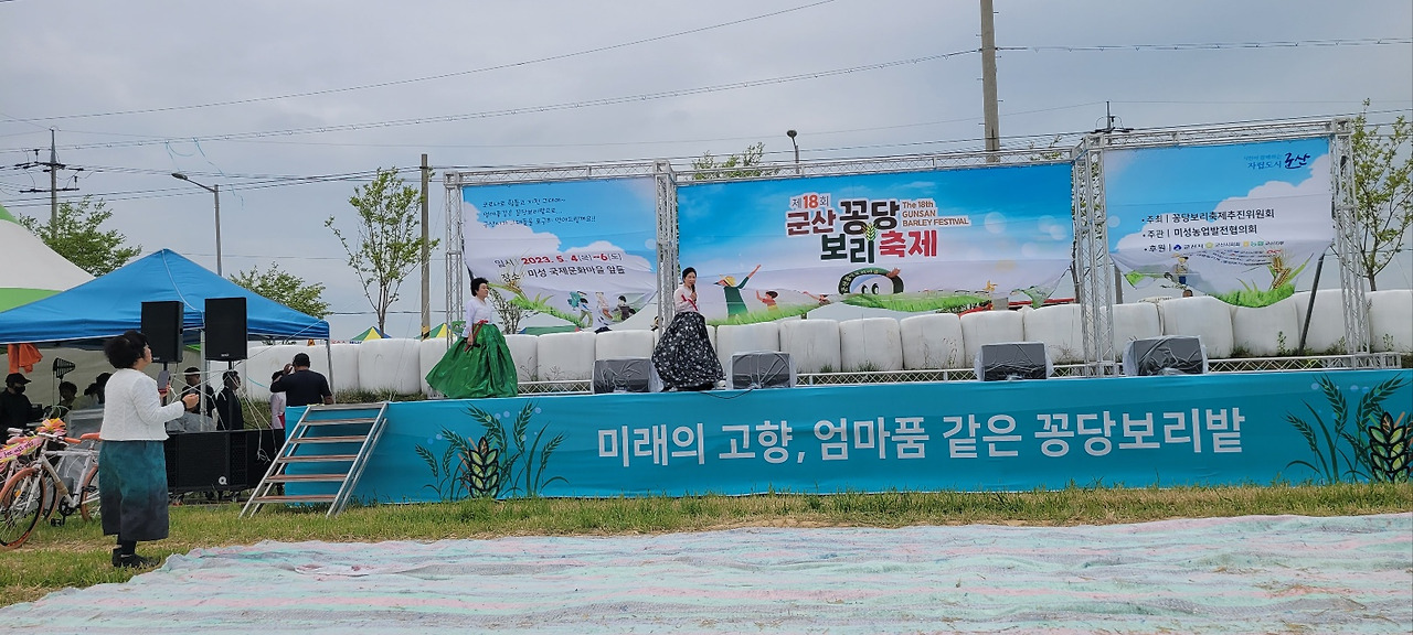 어제는 군산시에서 주최하는 꽁당 보리 축제가 있었다. 오월, 보리가 자라 이삭이 필 때쯤이면 축제가 시작된다. 코로나가 오면서 4년 동안 멈췄는데 이번 봄에 다시 제18회 축제가 열렸다. 꽁당 보리 축제에 우리 '한시예' 회원들은 시 낭송을 하게 되어 몇 날을 연습을 해야 했다. 무대 위에서 공연은 순간이지만 무대에 오르기 위해서는 많은 연습을 해야 한다는 걸 알았다.