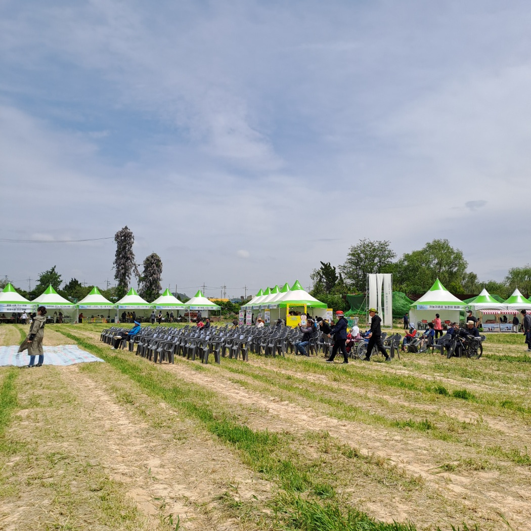 무대에 오를 사람들은 미리 오셔 리허설을 하고 있다. 창을 하는 분들도 연습을 하고 우리도 무대에 올라 연습을 해 본다. 행사장에는 많은 의자들이 손님을 기다리고 주변으로 쳐 놓은 텐트는 여러 종류의 체험장과 여러 종류의 먹거리, 또는 농산물을 파는 판매장도 줄지어 시설해 놓았다. 날씨가 좋아 사람들이 많아 오셔야 장사도 잘 될 텐데.