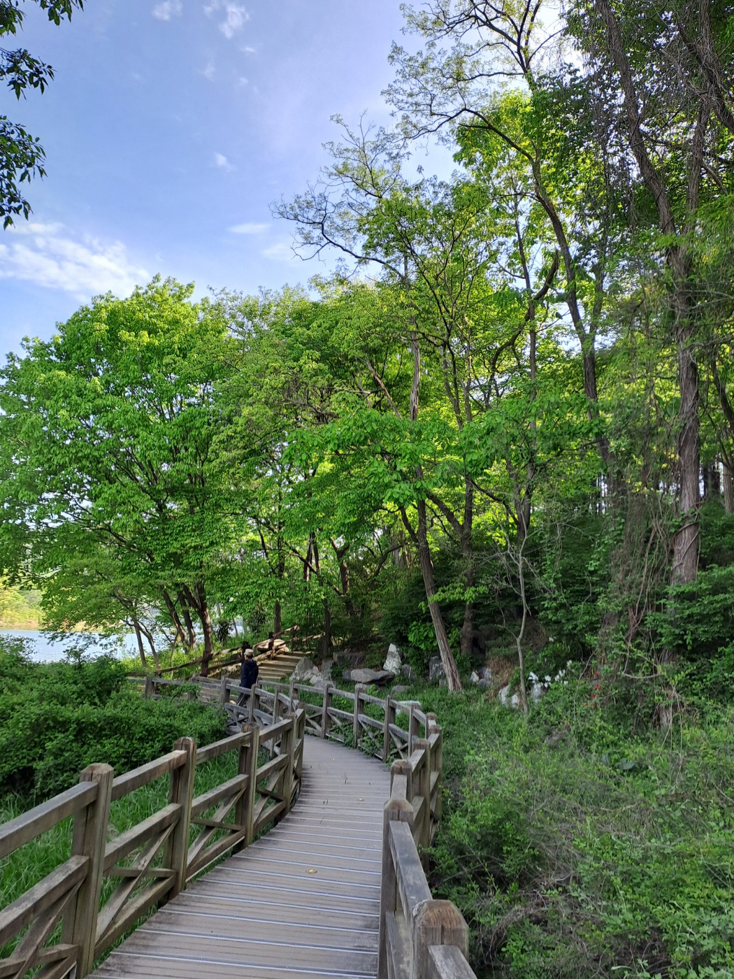 길을 걷다가 초록 속에 앉아 쉬고 있으면 나도 마치 초록의 한 부분이 된다. 내 앞에 보이는 커다란 나무 위에 청설모 두 마리가 오르락내리락 숨바꼭질하듯을 장난을 친다. 걷다가 잠깐 앉아 쉴 때면 온갖 자연의 소리를 들을 수 있다. 새소리, 바람소리 가만히 눈 감고 듣는 자연의 소리는 탁한 마음도 씻어 내는 듯 모든 번뇌에서 사라진다.