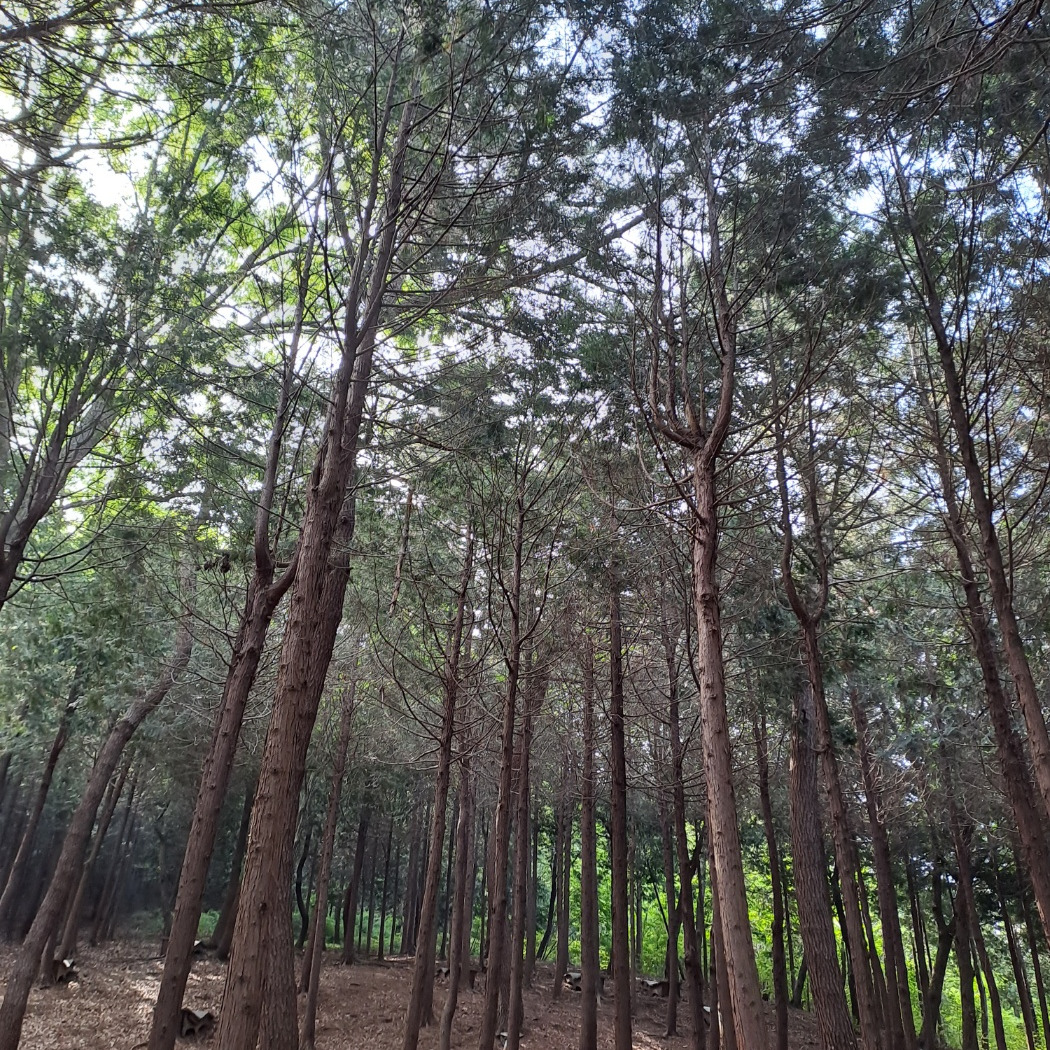 빽빽이 우거진 측백나무 아래 잠깐 쉬는 시간 갑자기 정호승 시인의 시가 생각난다.