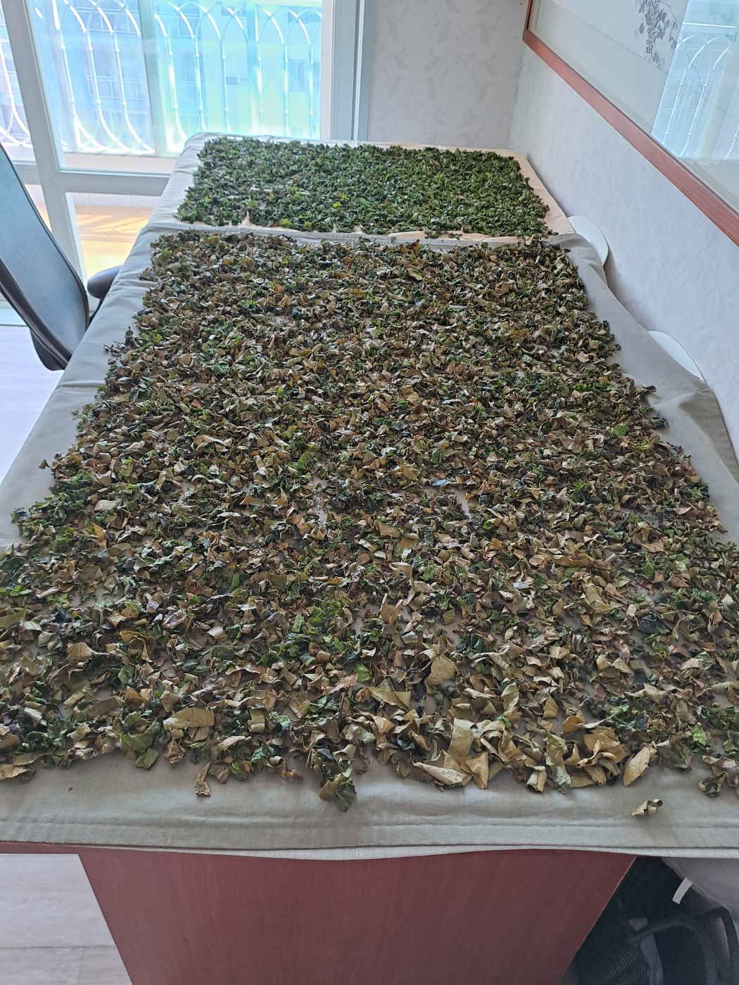 8. 천을 깔고 그늘에서 삼일 정도 건조하면 바스락 소리가 난다.