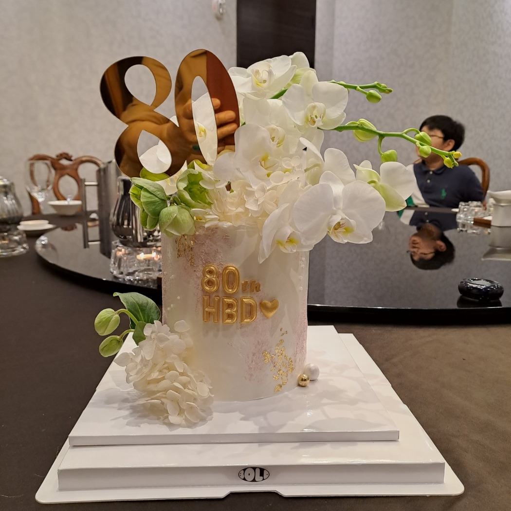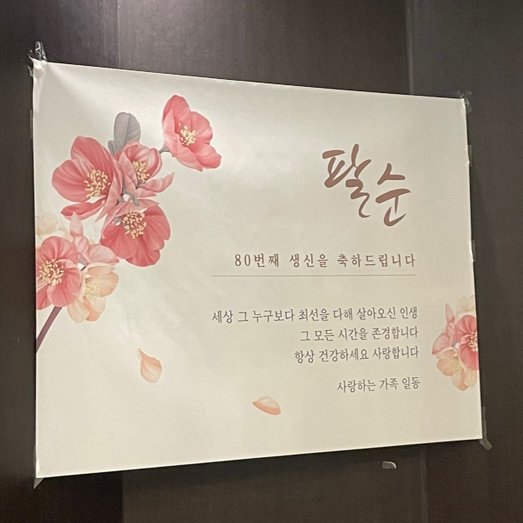 가족이 모이는 곳은 신사동 어느 호텔 룸을 예약해 놓았다고 한다. 용산에서 출발한 우리는 시간이 많이 걸리지 않았다. 룸에 들어서는 순간 팸플릿을 보고 멈칫해진다. 막내딸이 들고 온 생일 케이크도 특별하다. 아침 꽃 시장에서 공급해 케이크 위에 올려놓았다는 미색 호접란 꽃이 케이크의 품격을 더 해 주는 듯 멋지다. 단아하고 아름다웠다. 지금껏 내가 본 케이크 중에 으뜸이다. 특히 금색 80이란 숫자가 내 머리에 각인될 정도로 멋있다.