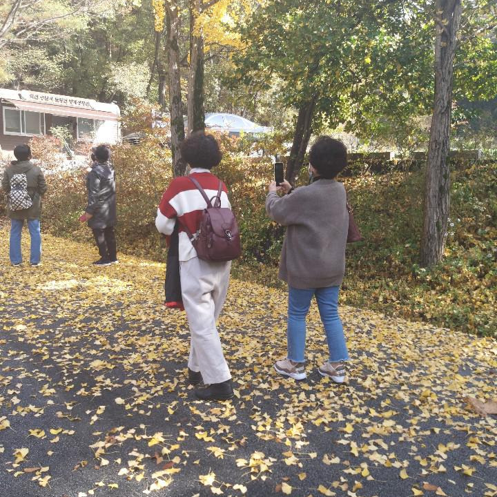 회원들은 사진 찍기에 바쁘다. 모두 사진 동우회 사람들 같다. 곱게 물든 나뭇잎들을 보고 이리 행복하고 즐거워할까? 자연은 신이 인간에게 주는 가장 큰 선물이다. 오늘은 나이와 관계없이 모두 소녀로 돌아갔다. 오늘의 예쁜 풍경을 카메라 렌즈에 담기에 바쁘다.