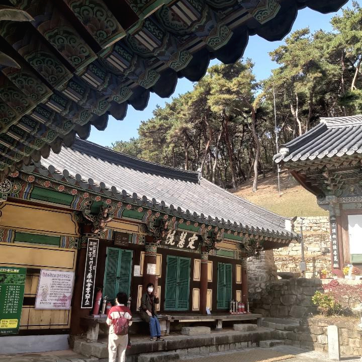대웅전 부처님을 바라보고 합장을 하면서 소원도 빌어 보고 내려온다. 티끌 하나 없이 깨끗한 절마당은 가을의 청명한 햇살이 이불을 깔아 놓은 듯 햇살이 따스하고 포근해 보인다. 우리는 아래 칸 정혜원 툇마루에 않아 눈이 부신 은행나무 잎을 하염없이 바라보면서 찬란하게 생을 마감하는 마지막을 모습을 상상해 본다.