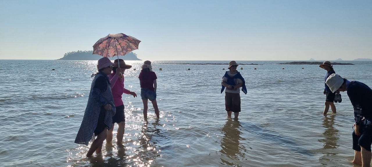 창가에 앉아 밖을 바라보며 진 녹색의 푸르름도 눈이 즐겁다. 도착을 한 뒤 각자의 시간을 즐긴다. 바닷가를 걷는 사람 바닷물에 몸을 적시는 분들. 리조트 주변을 산책하는 사람들. 더위를 피해서 쉬고 계시는 분들, 본인들의 시간을 즐긴다. 나는 바닷물에 들어가도 것도 이제는 망설이다 바닷가 모래사장을 걷다가 방으로 들어왔다. 땀이 얼마나 나는지, 움직이면 땀이다.