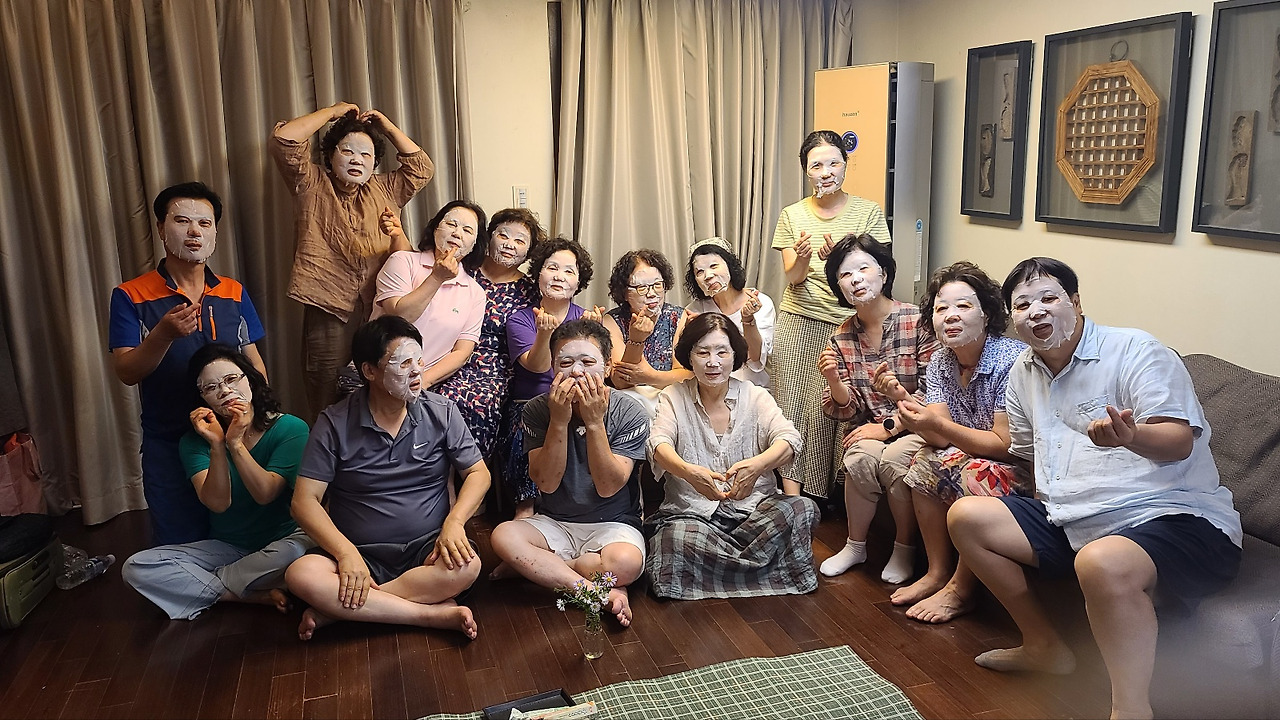항상 멋진 시를 많이 쓰시고 극 대본도 잘 쓰시는 연출가 선생님 제안에 따라 나이순 서열 나누기가 시작되고 몰랐던 나이를 알게 되면서 웃음보따리가 터진다. 자기가 이 모임에서 몇 번인가를 확실히 알게 됐다. 다른 때는 말이 없던 선생님의 유모를 알게 되는 것도 즐거웠다. 멋쟁이 리원 선생님이 준비해 온 마스크 팩을 모두 붙이고 그 모습은 또 얼마나 재미나는지 모두가 깔깔대며 웃는다.