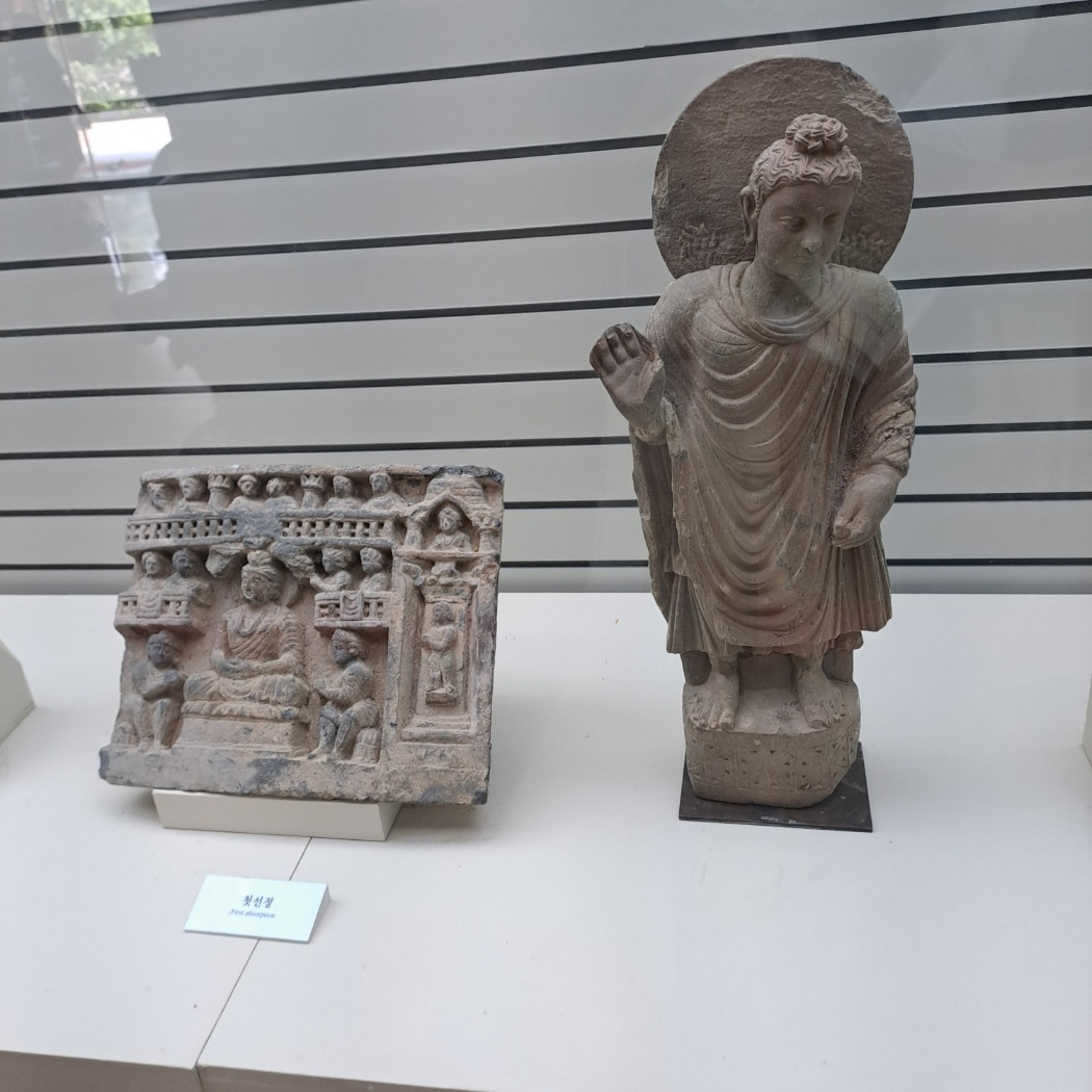 간다라 유물관은 대승 불교문화의 본 고장인 간다라의 불전도 및 불상등 진품유물을 전시하여 간다라 불교문화 예술의 특징적 요소를 직접 관람하고 느낄 수 있도록 하였고 건축 양식도 간다라 건축 요소를 담아내도록 하였다. 유물관에 들어가니 각기 다른 유물들을 전시해 놓았다. 옛날 사람들은 어찌 손끝이 그리 야문지 유물들을 바라보며 놀라며 감탄을 한다. < 팸플릿 중에서>