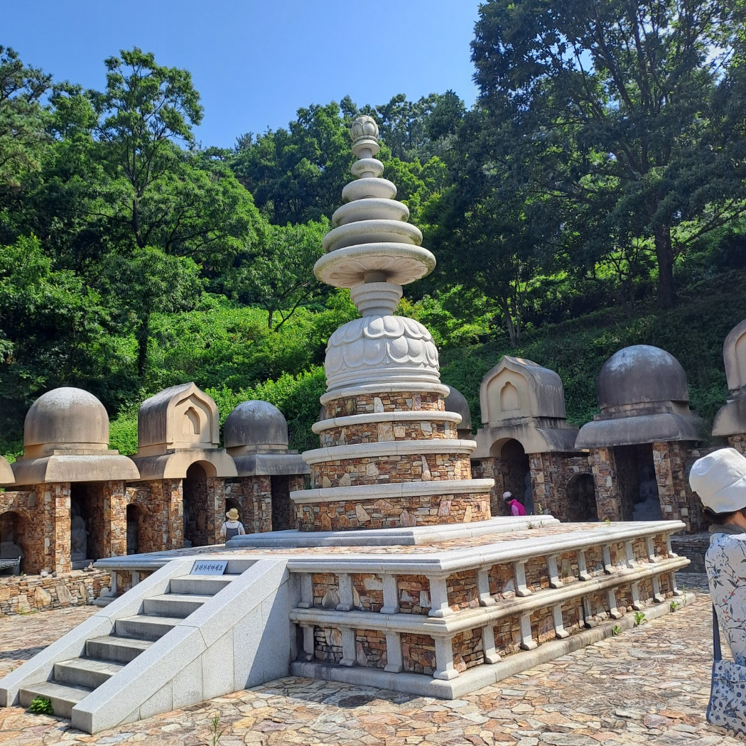 길 따라 내려가니 바다가 보이는 곳에 낯선 풍경이다. 처음 보는 다른 풍경에 깜짝 놀랐다. 우리나라에서는 한 번도 보지 못한 건축물과 색다른 조형물들이 특이하다. 이곳은 '백제 불교 최초 도래지, ' 행정구역으로는 영광 법성포다. 마라난타존자라는 스님이 중국동진에서 해로를 통해 백제에 입국할 때 최초에 당도하여 불교를 전파했다는 곳이다. 스님은 인도 사람이라 한다.
