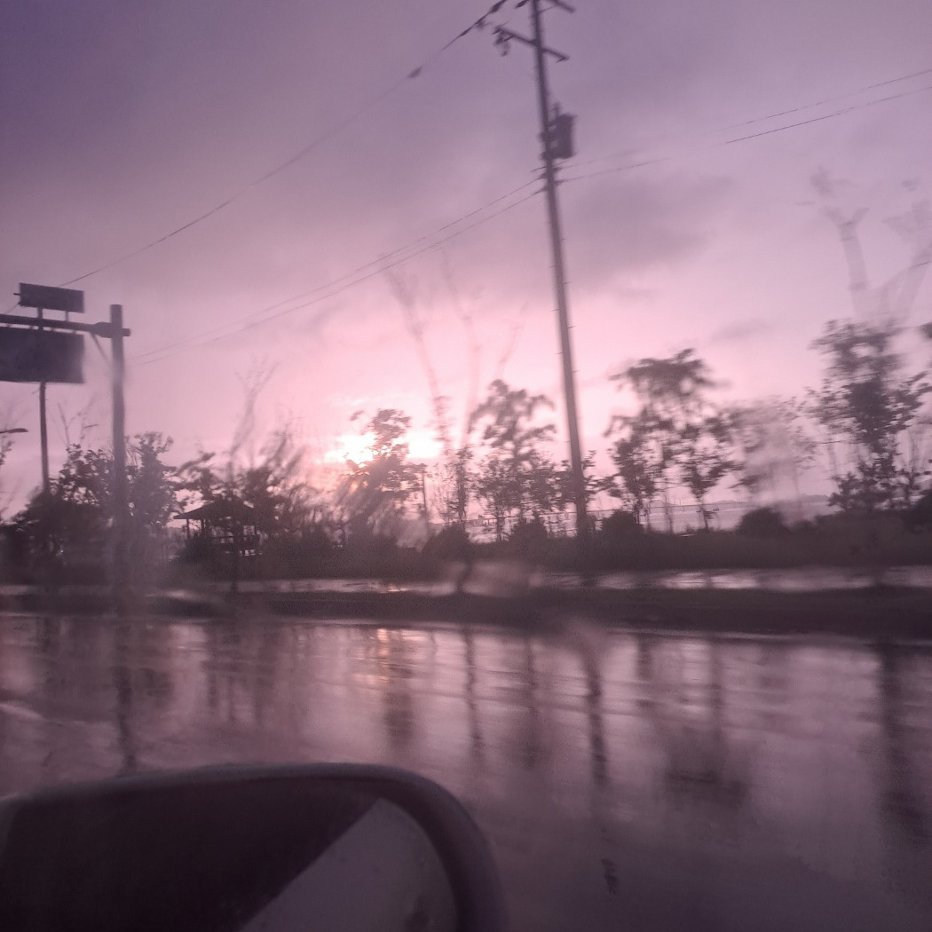 비는 오는데 지는 해가 밝다 눈이 부실 정도로 노을은 밝다