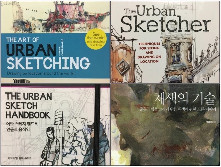 수채화 기법을 학습하기 위해 국내외 동영상을 폭넓게 학습했다. 마음에 드는 여러 권의 외국 도서를 구입해서 읽었다. 아래 도서가 큰 도움이 되었다.