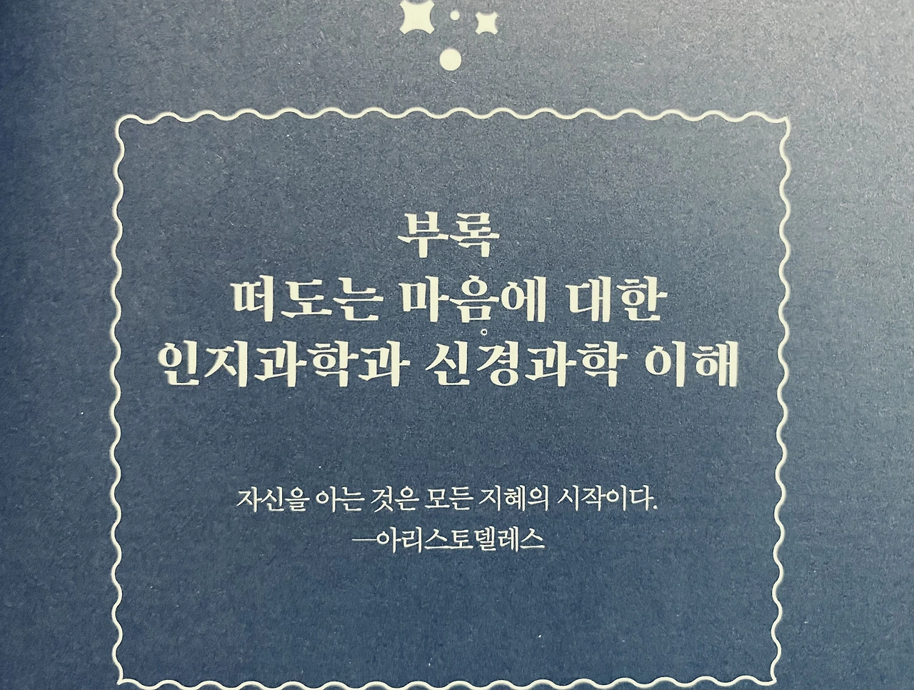 인지과학과 신경과학의 통합적인 관점에서 ‘떠도는 마음’을 이해하면, 현장 적용이나 학술연구에도 도움이 됩니다. 그러나 내용이 학술적일 수 있어서 부록으로 정리했습니다. 먼저 본문을 읽고 부록을 보면 떠도는 마음의 작동 기제를 심도 있게 학습할 수 있습니다.