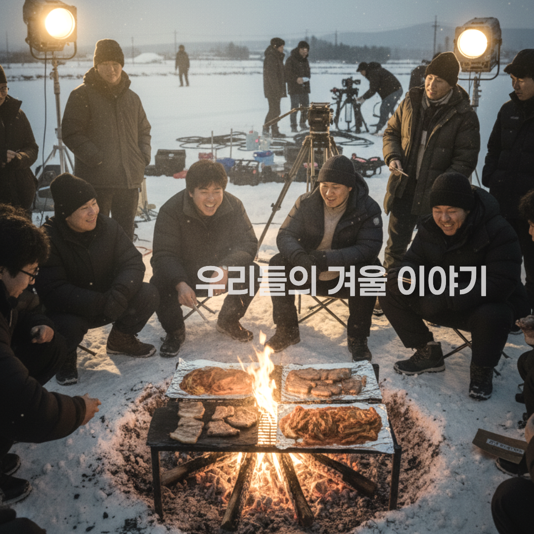그해 겨울은 유난히도 혹독했고, 살을 에는 듯한 칼바람이 제집 안마당인 양 휘젓고 다니던 텅 빈 논 한복판은 그야말로 동토(凍土)나 다름없었습니다. 하지만 그 시절 우리에게 추위란, 뷰파인더 너머로 세상을 담아내겠다는 뜨거운 열정 앞에서 맥없이 녹아내리는 사소한 장애물에 불과했습니다. 두꺼운 파카를 겹쳐 입어도 스며드는 한기 속에서, 감독의 '액션' 소리가 떨어지면 현장은 순식간에 팽팽한 긴장감으로 얼어붙었고 스태프들의 입에선 하얀 입김이 쉴 새 없이 뿜어져 나왔습니다. 오직 그날의 분량을 완벽하게 담아내겠다는 일념 하나로 모두가 카메라 앞의 피사체에 신경을 곤두세우고 있을 때, 프레임 밖 한편에서는 또 다른 치열한 생존의 현장이 분주하게 돌아가고 있었습니다. 얼음장처럼 딱딱하게 굳은 논바닥을 곡괭이로 깨내어 구덩이를 파고, 인근 폐가에서 주워온 마른 장작과 깨진 슬레이트 지붕 조각을 모아 불을 지피는 일은 촬영만큼이나 중요한 과업이었습니다. 잘 먹자 ^^
