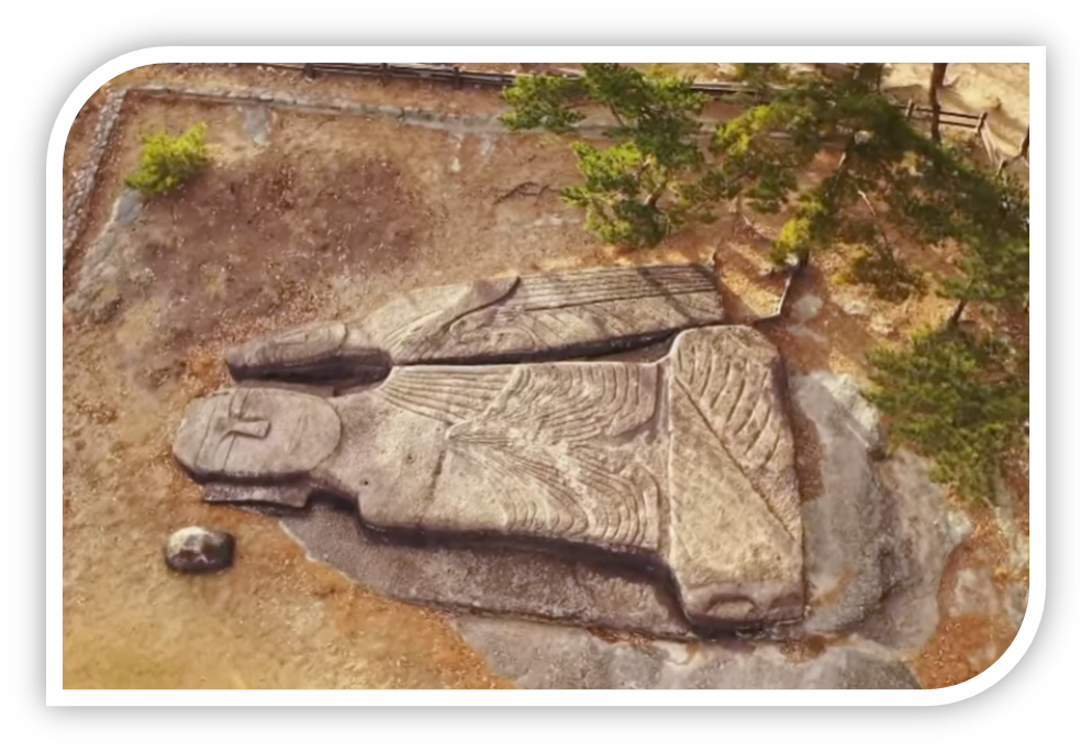 <그림 1> 운주사 천불천탑 공간에서 서쪽 능선의 암반에 새긴 거대 좌불과 입상의 이름은 무엇일까?