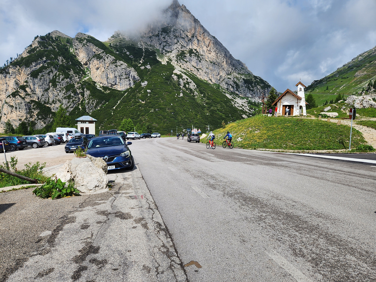 사진 24. 라가주오이 산을 오르는 출발지인 파쏘 팔자레고(고갯길) 이태리는 자전거의 나라이고, 돌로미티는 싸이클링의 천국이다.
